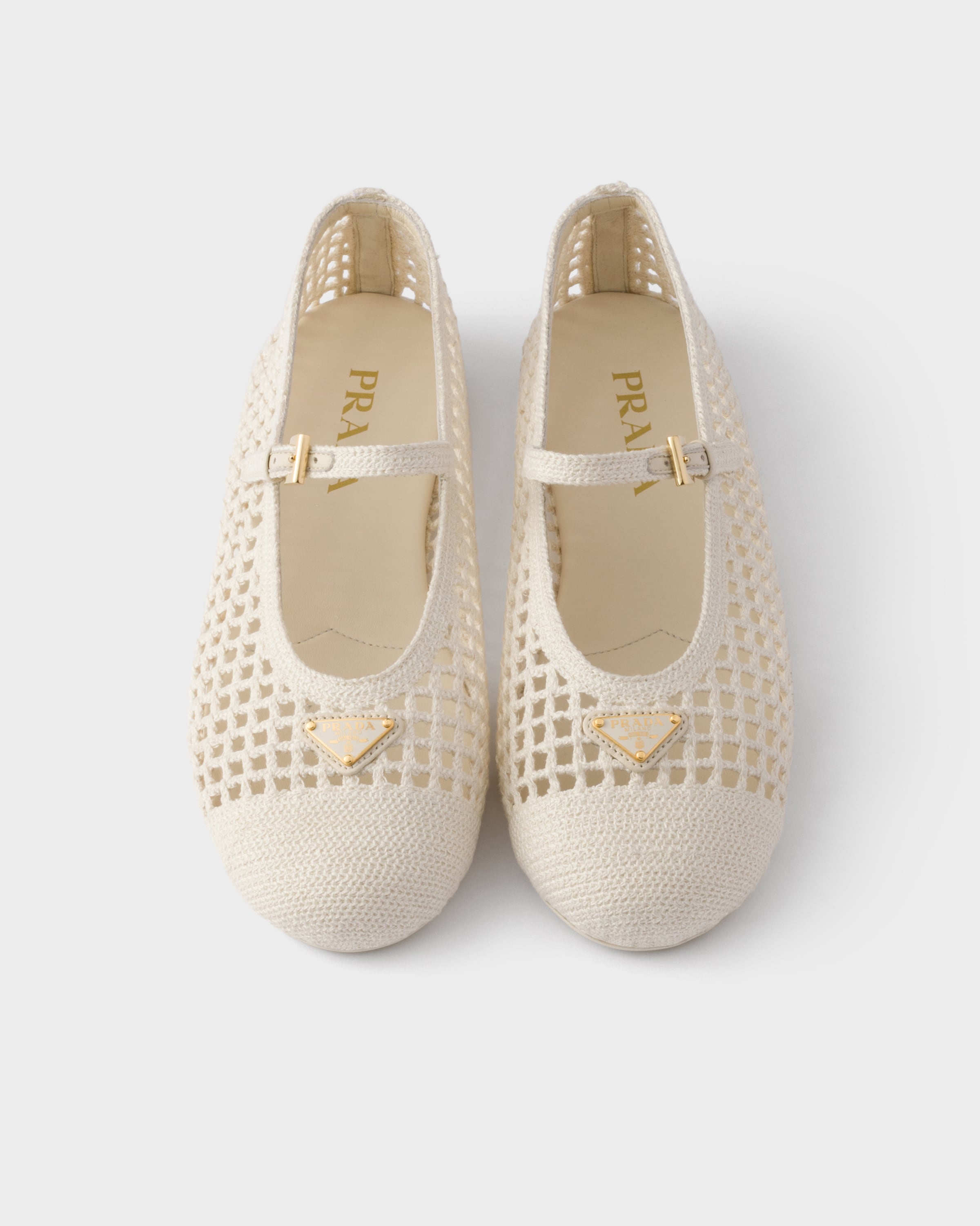Эффектные вязаные балетки на тонкой подошве с едва заметным каблуком дополнены регулируемым ремешком и украшены фирменным металлическим логотипом бренда.
