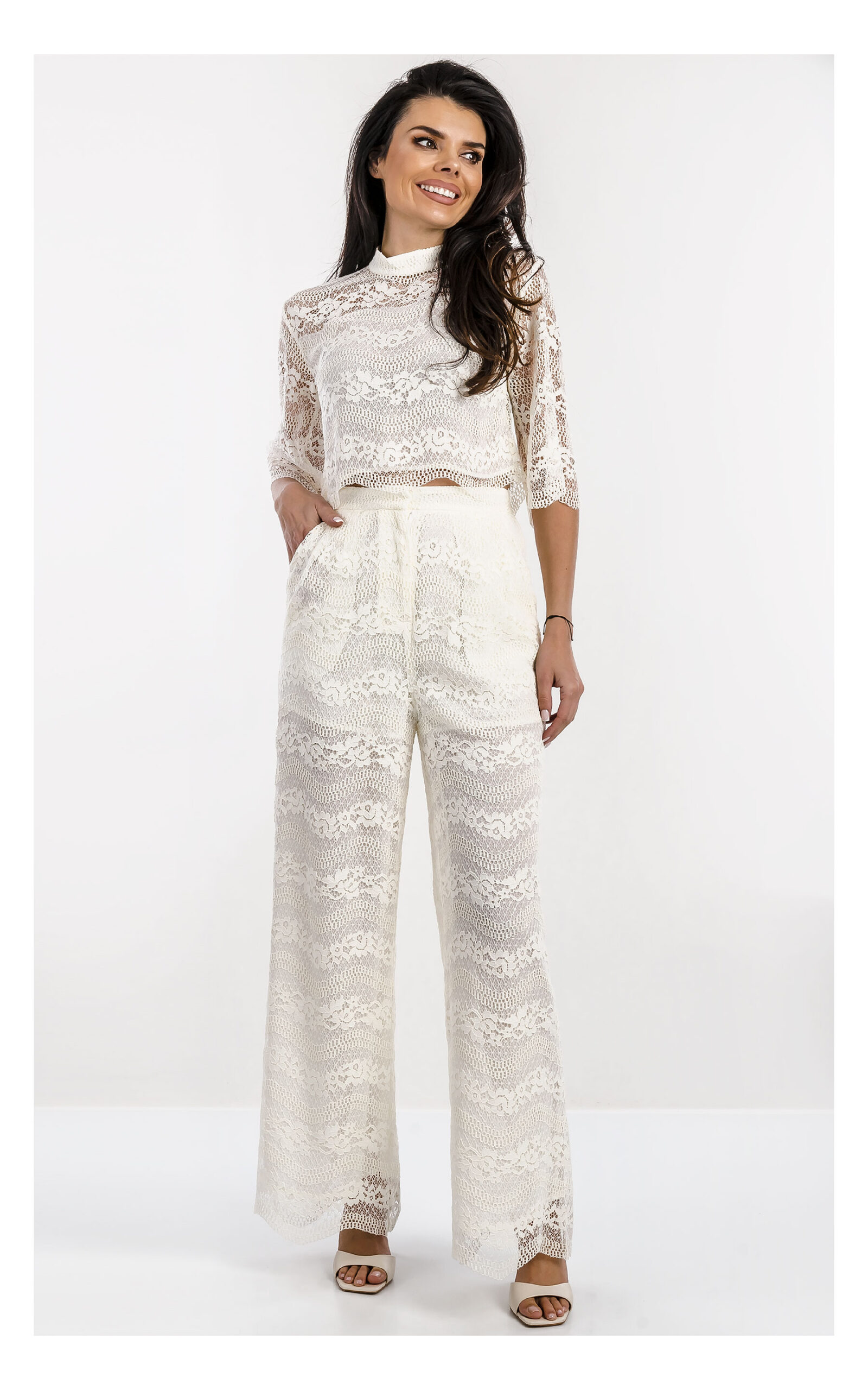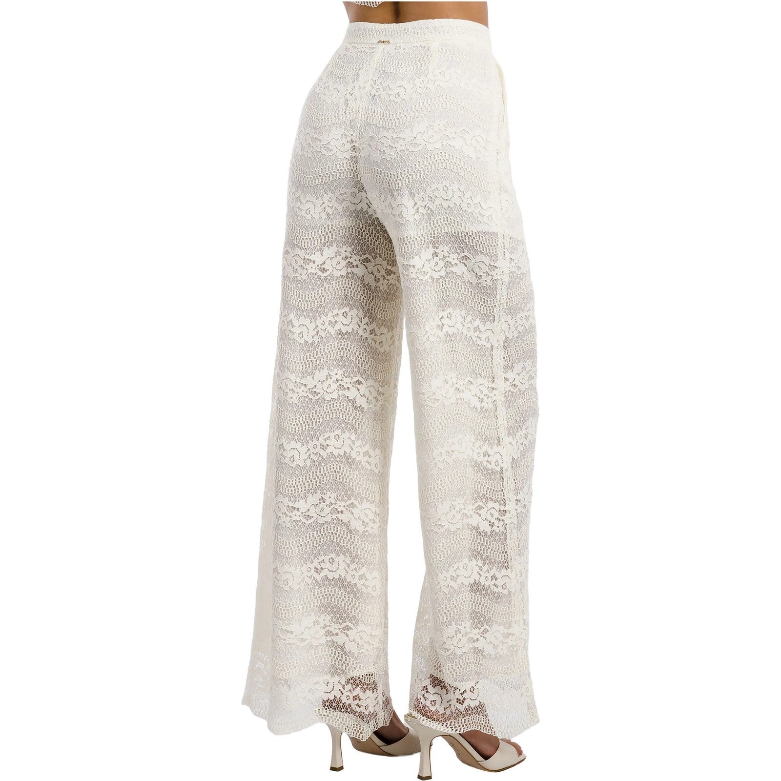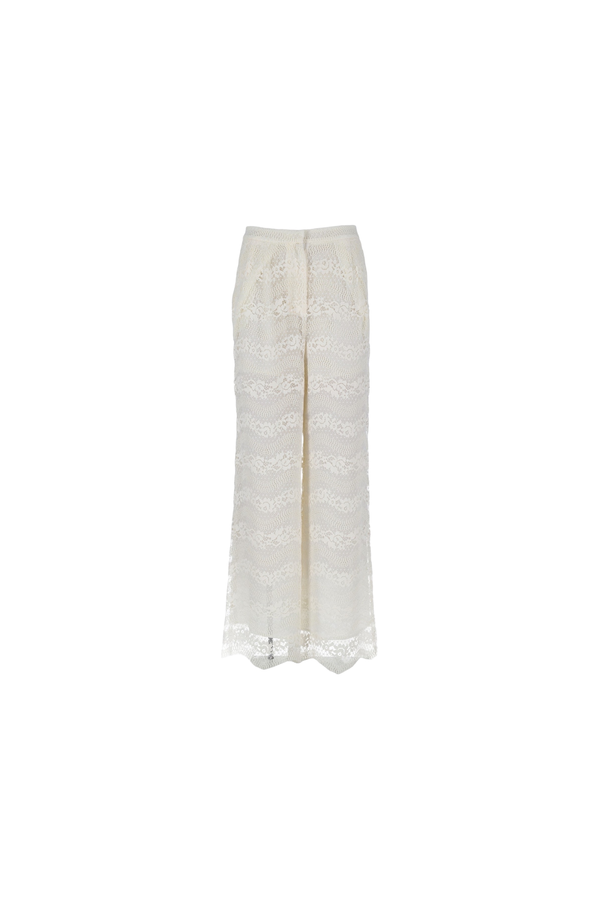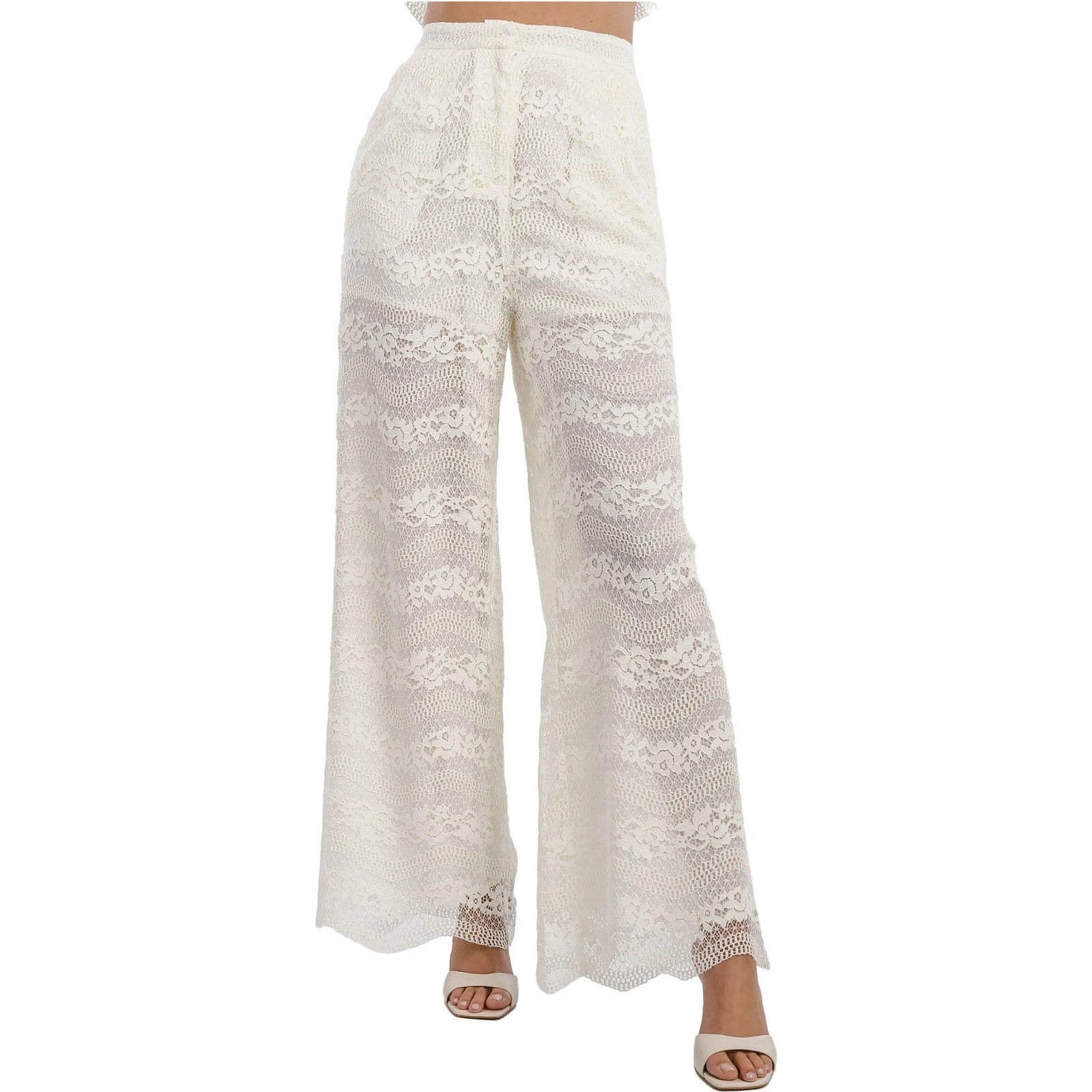 Струящиеся кружевные брюки на высокой посадке дополнены подкладкой и боковыми карманами спереди.