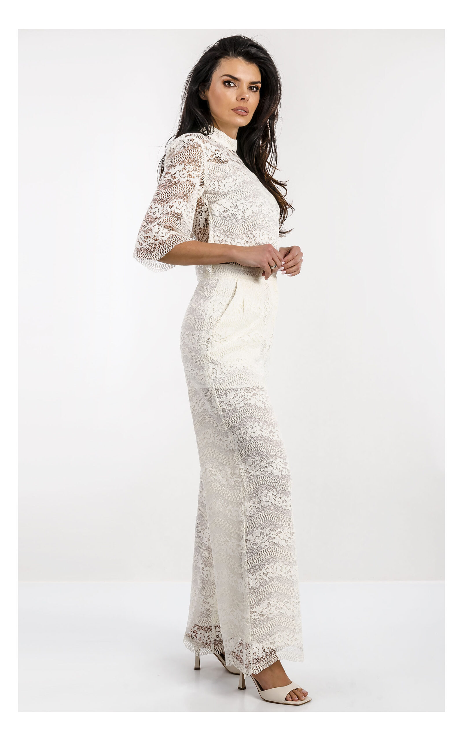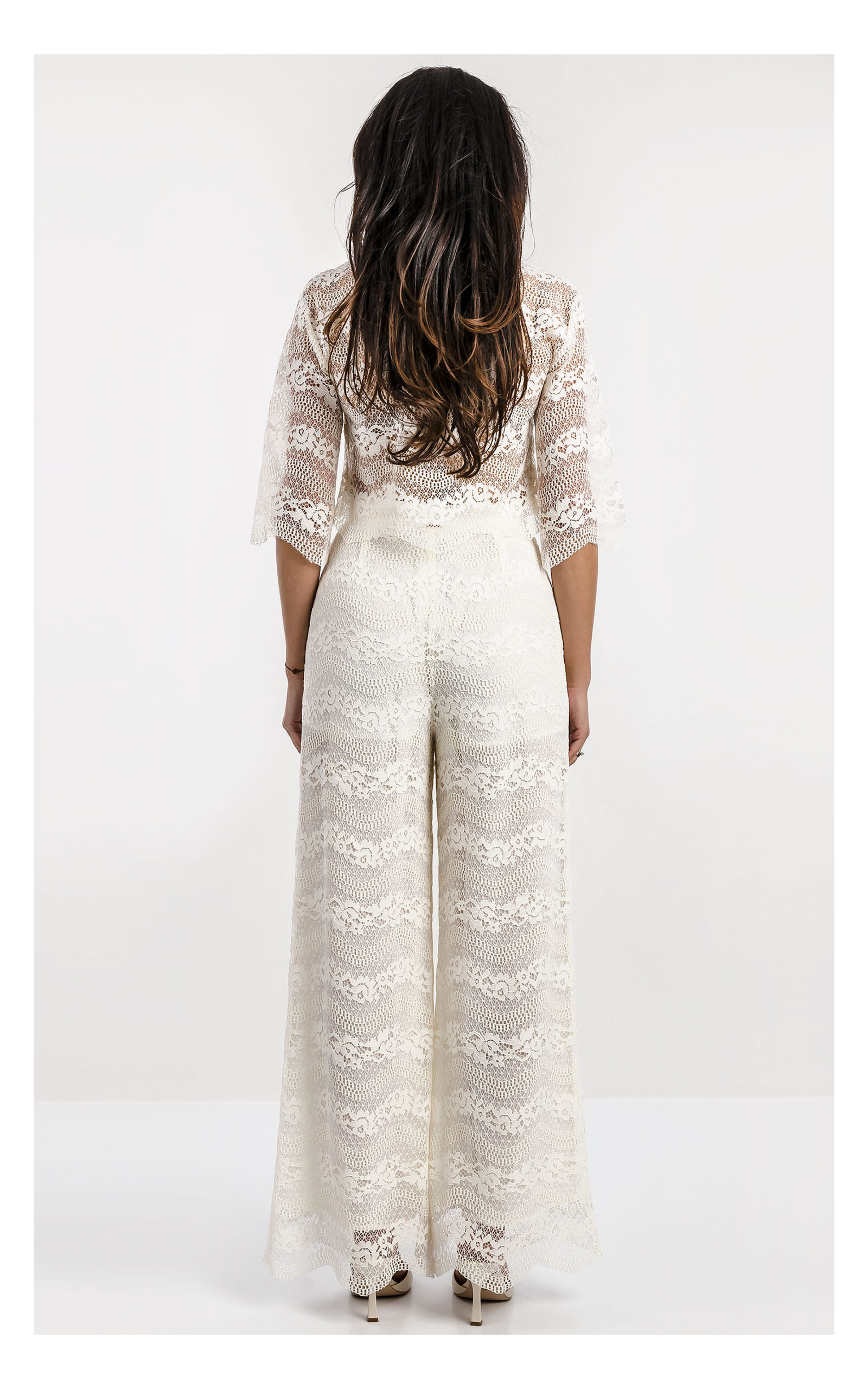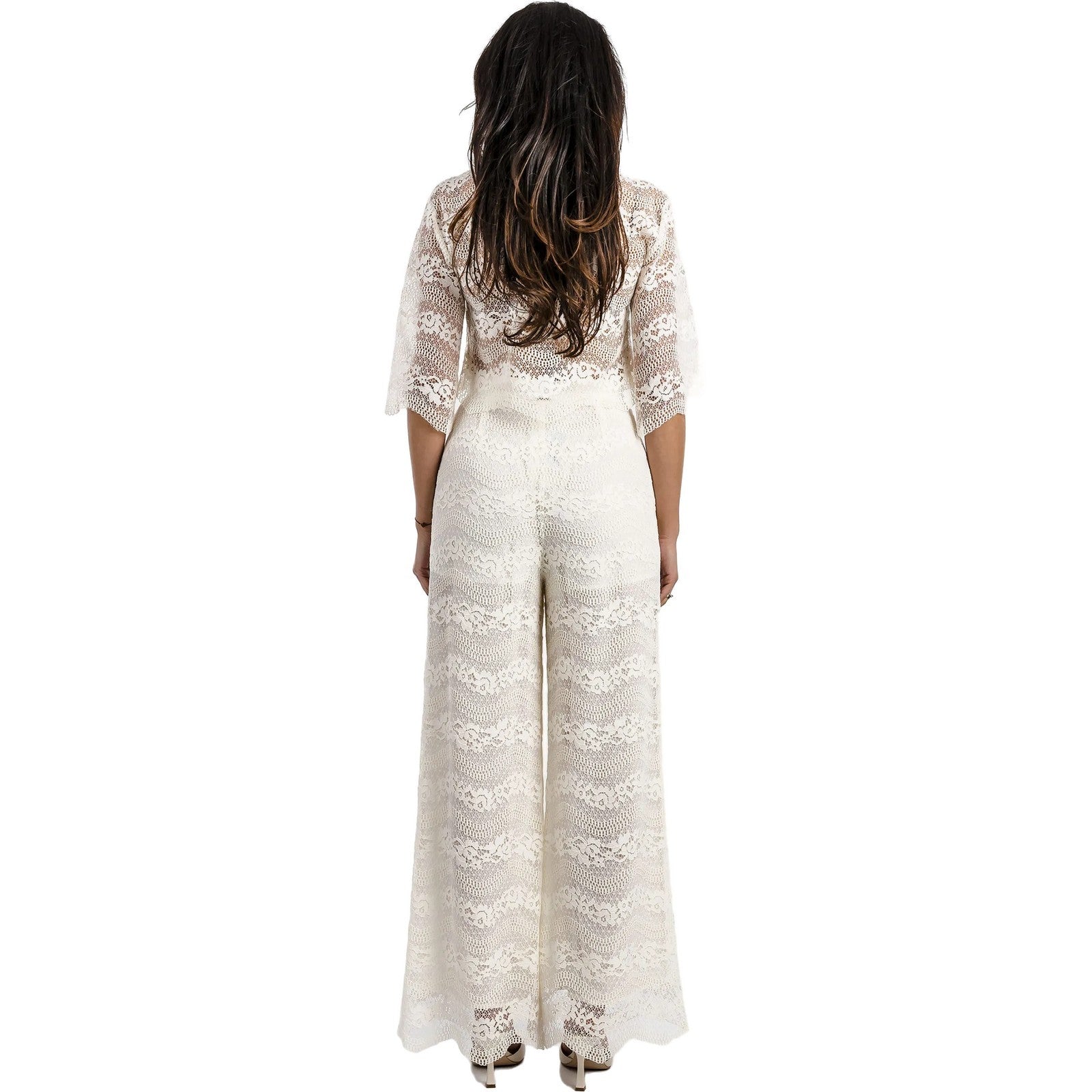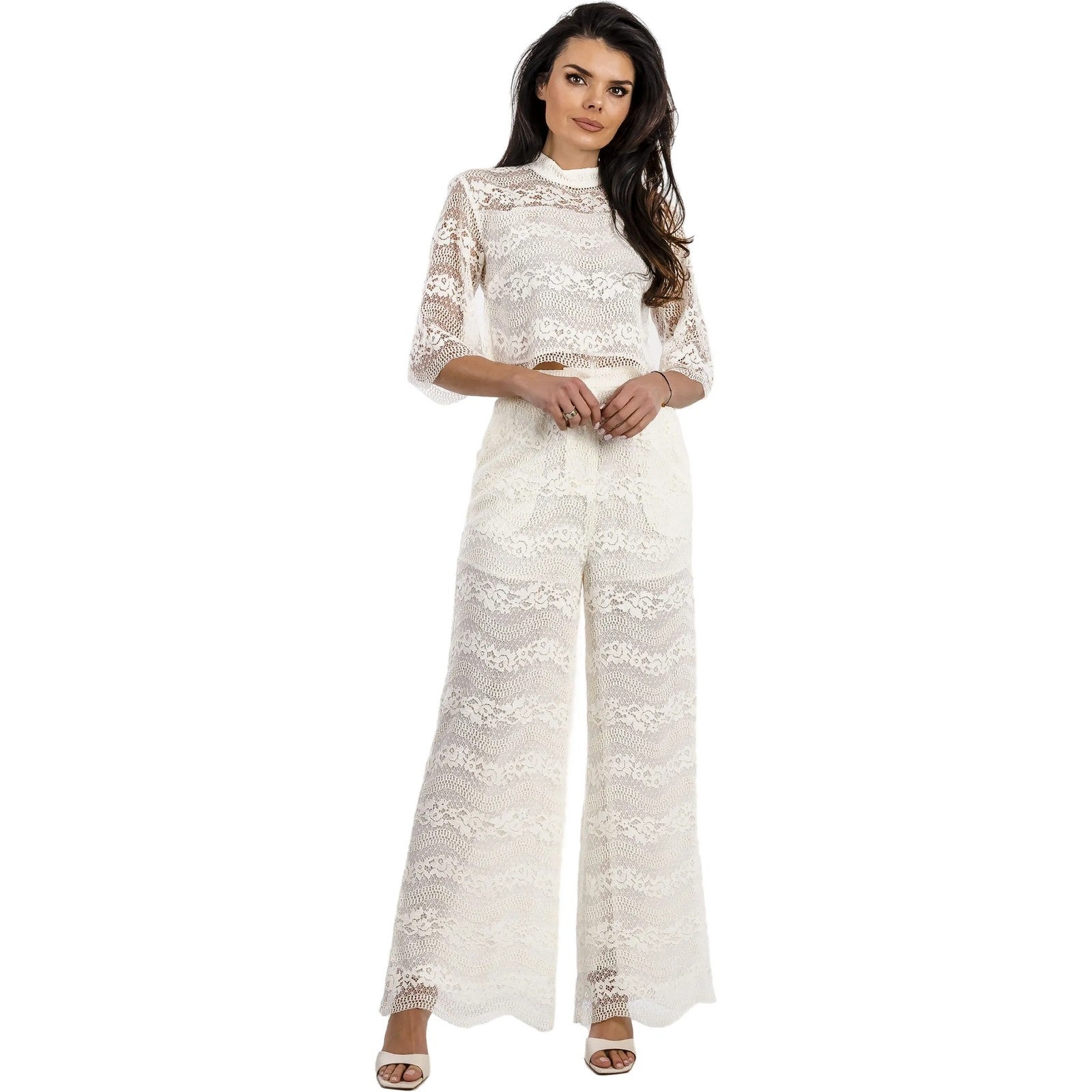 Струящиеся кружевные брюки на высокой посадке дополнены подкладкой и боковыми карманами спереди.