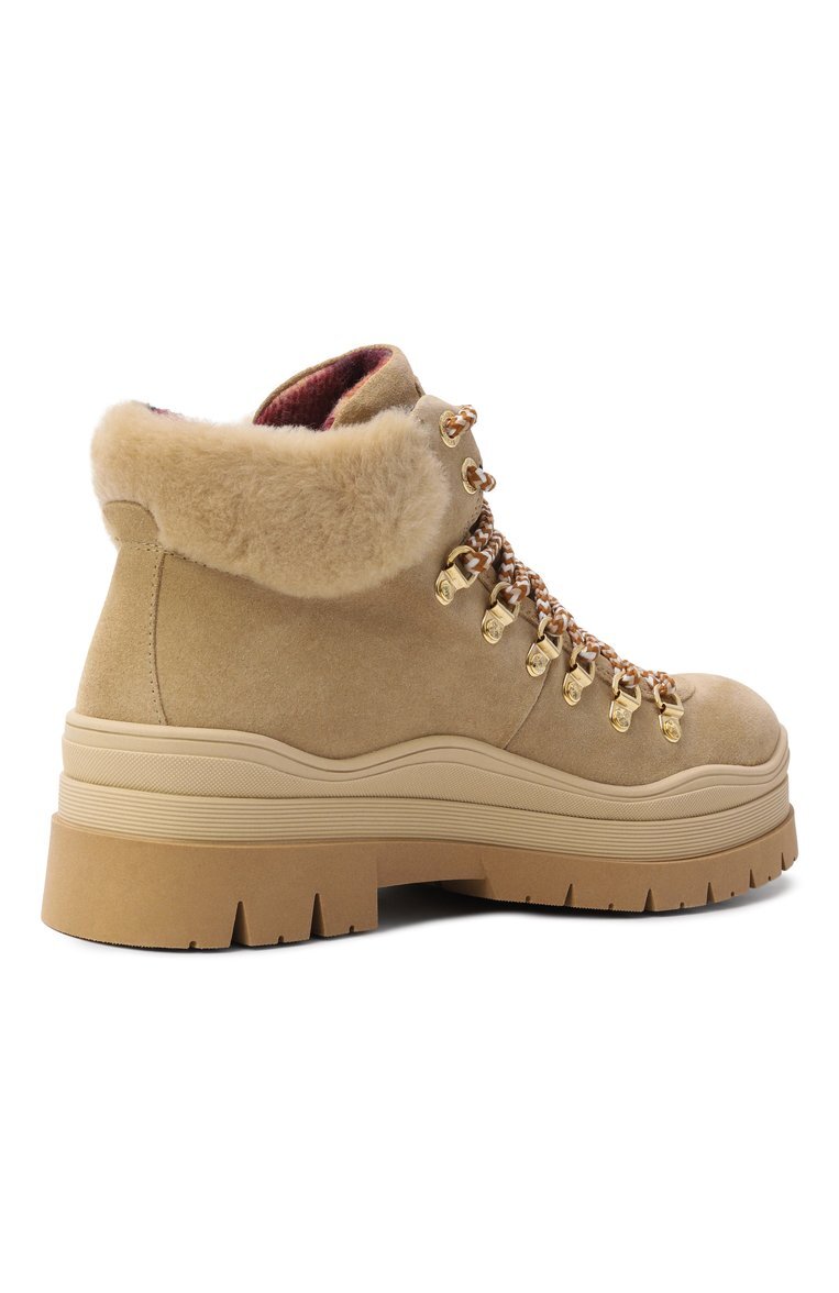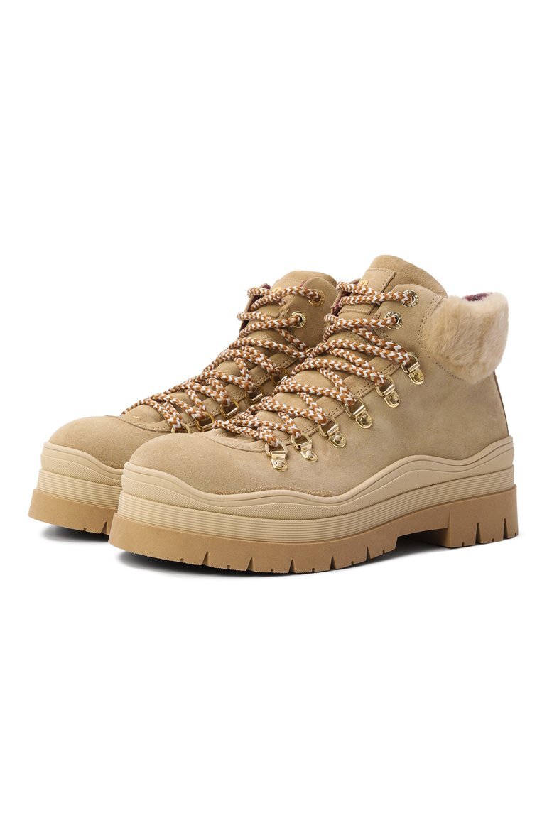Ботинки Arosa с усиленной шнуровкой выполнили из замши и овчины, а для внутренней отделки модели выбрали текстиль. Модель с эмблемой марки на язычке поставили на широкую полимерную подошву с протектором и фигурным рантом.