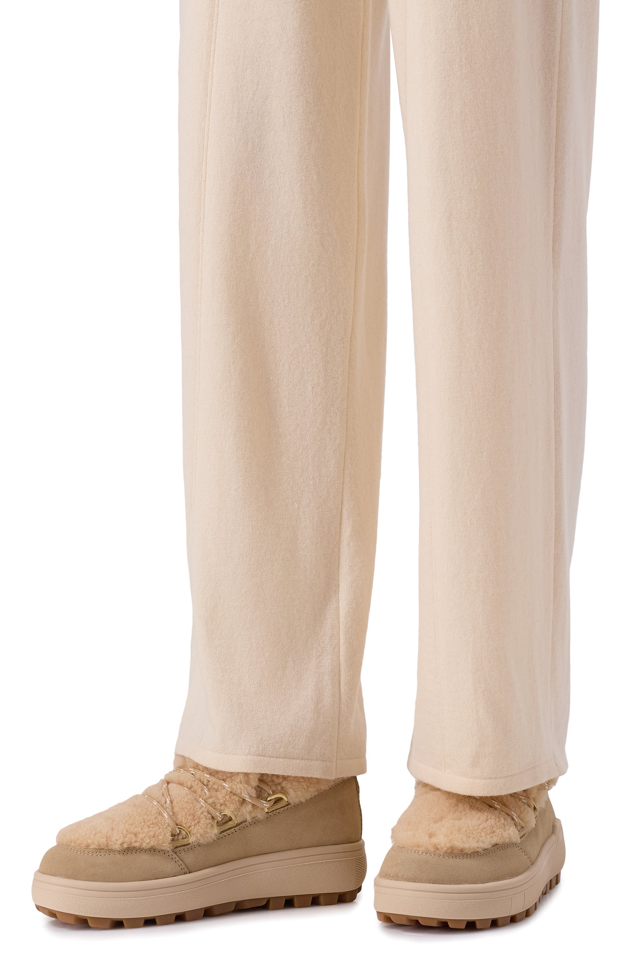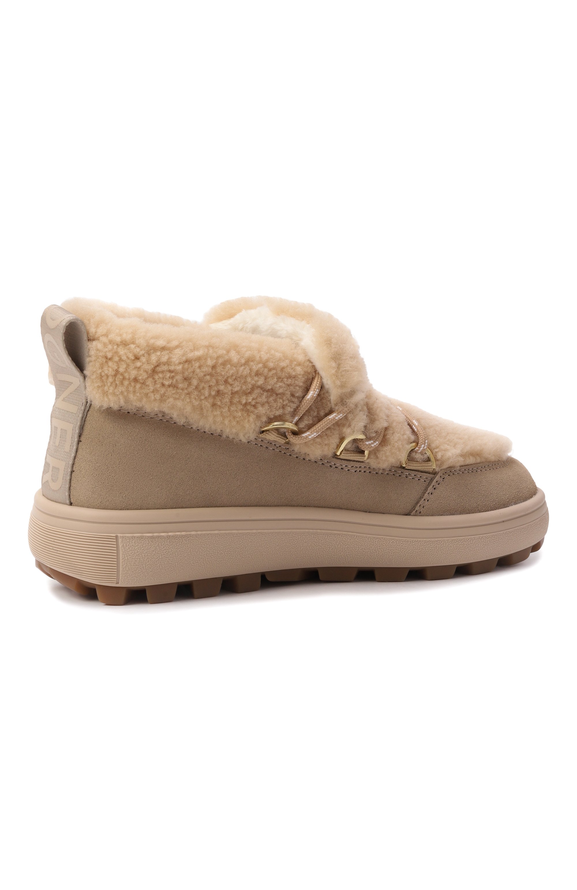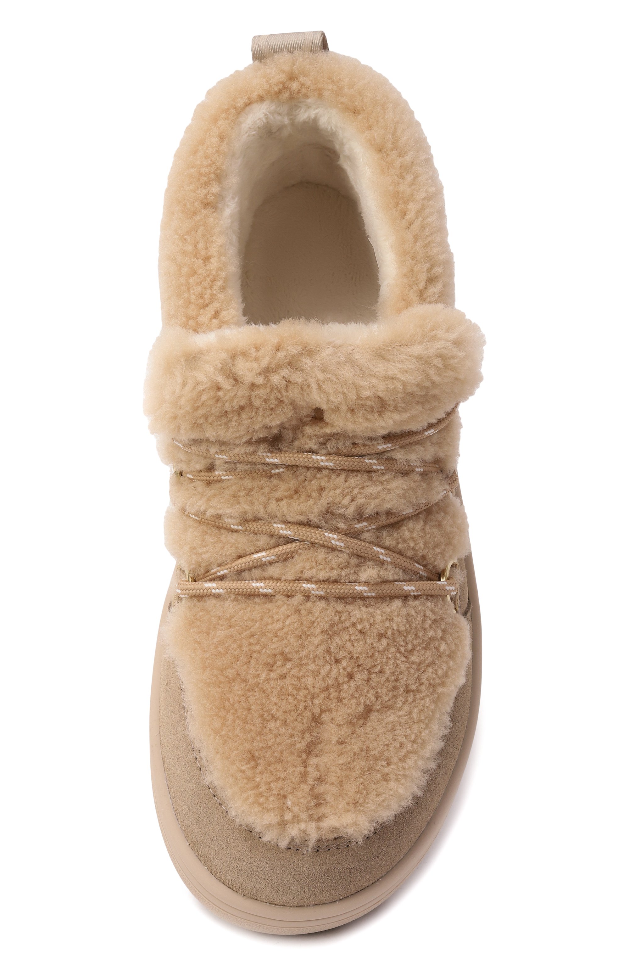 Ботинки Chamonix с замшевым рантом выполнили из пушистой овчины. Модель с брендированной петлей на заднике поставили на широкую сплошную подошву с выдвижными шипами OCsystem®.