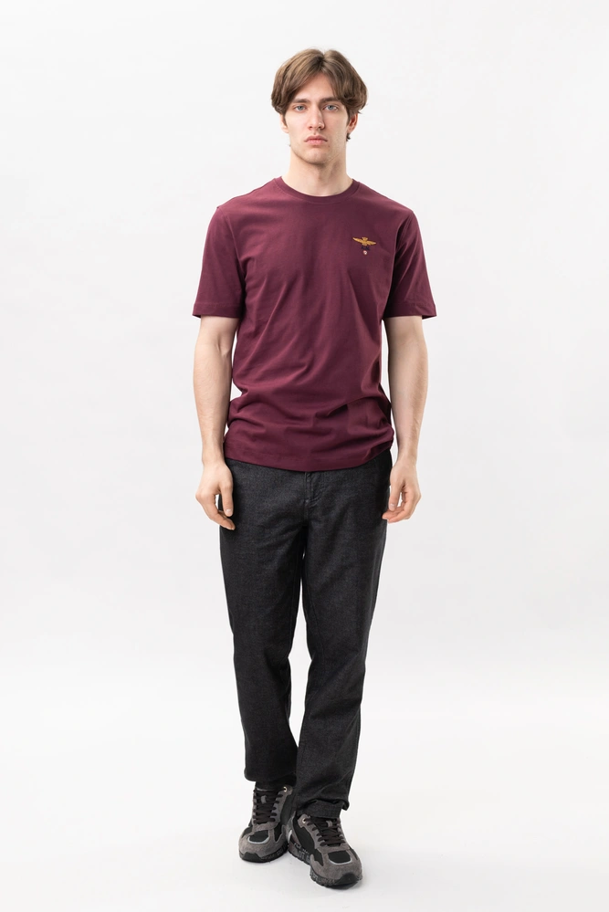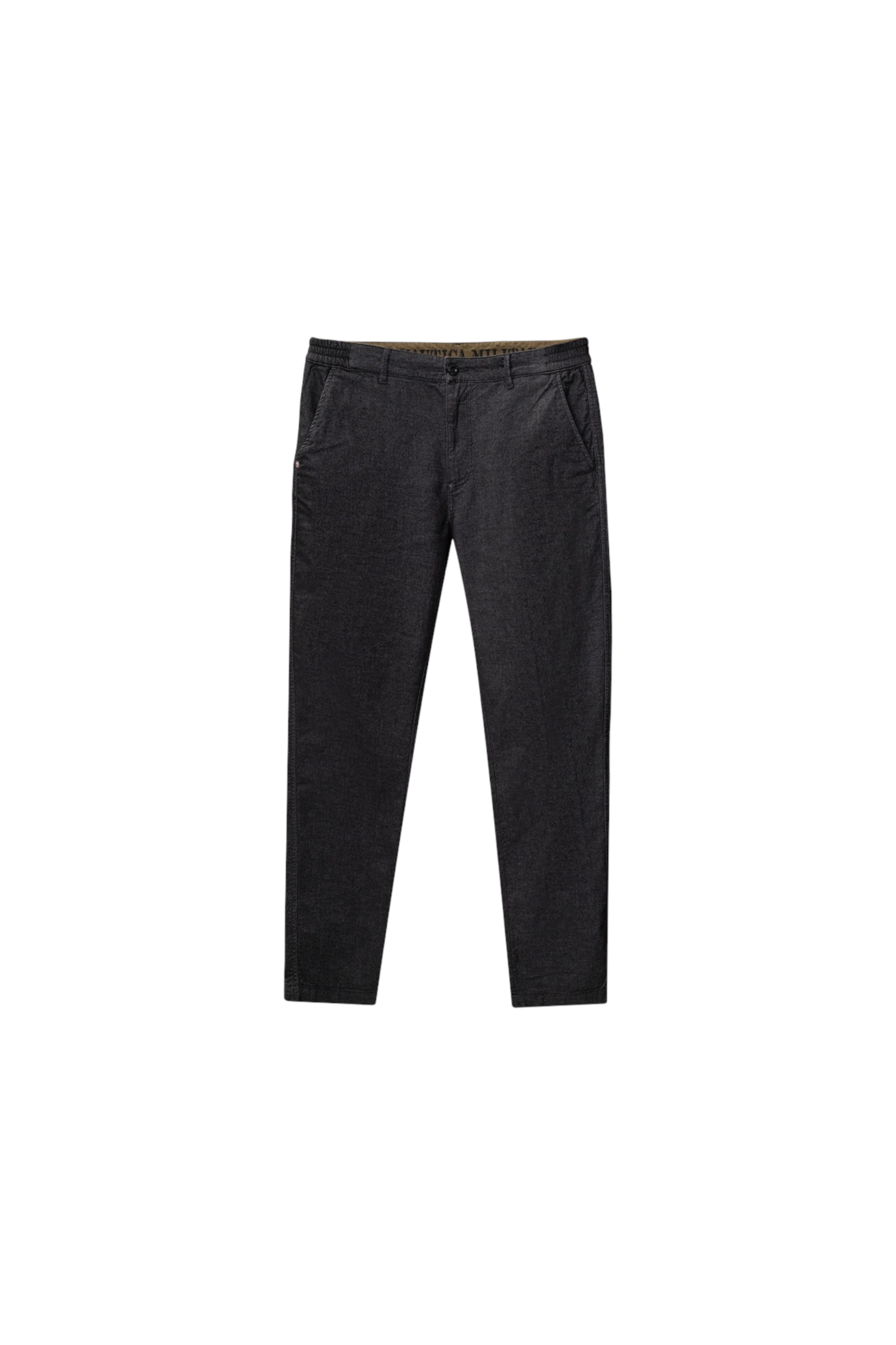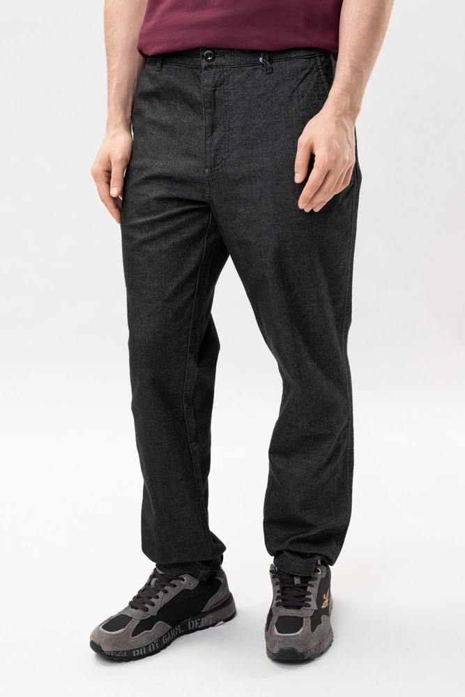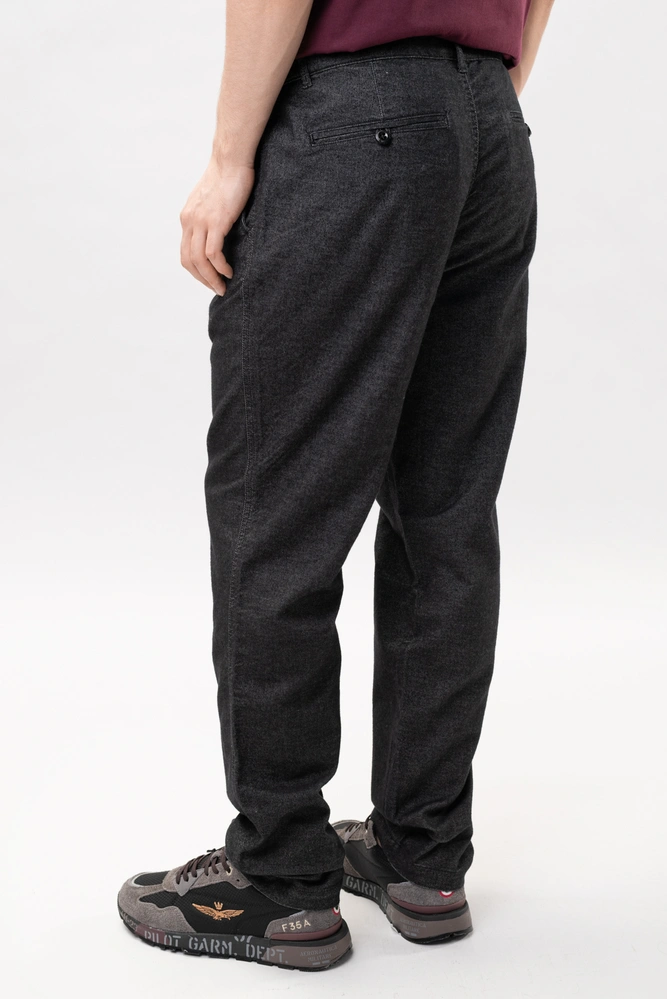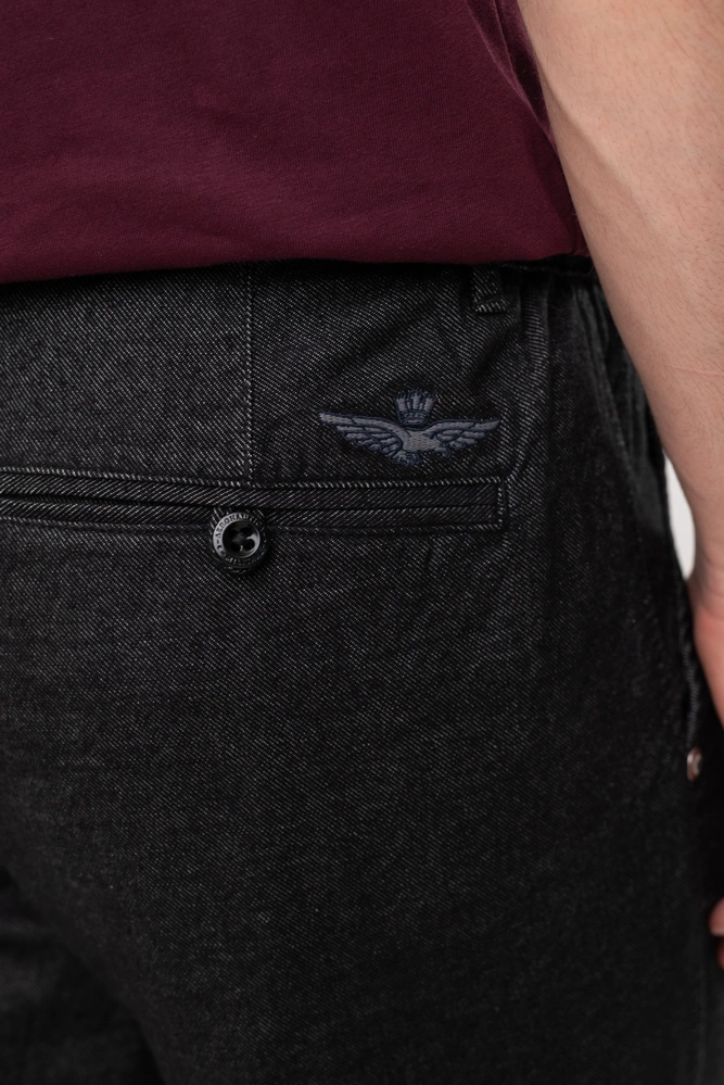 Лаконичные брюки из натурального хлопка и эластана с застежкой на молнию и пуговицу дополнены шлевками для ремня. Сзади изделие украсили фирменной эмблемой бренда.