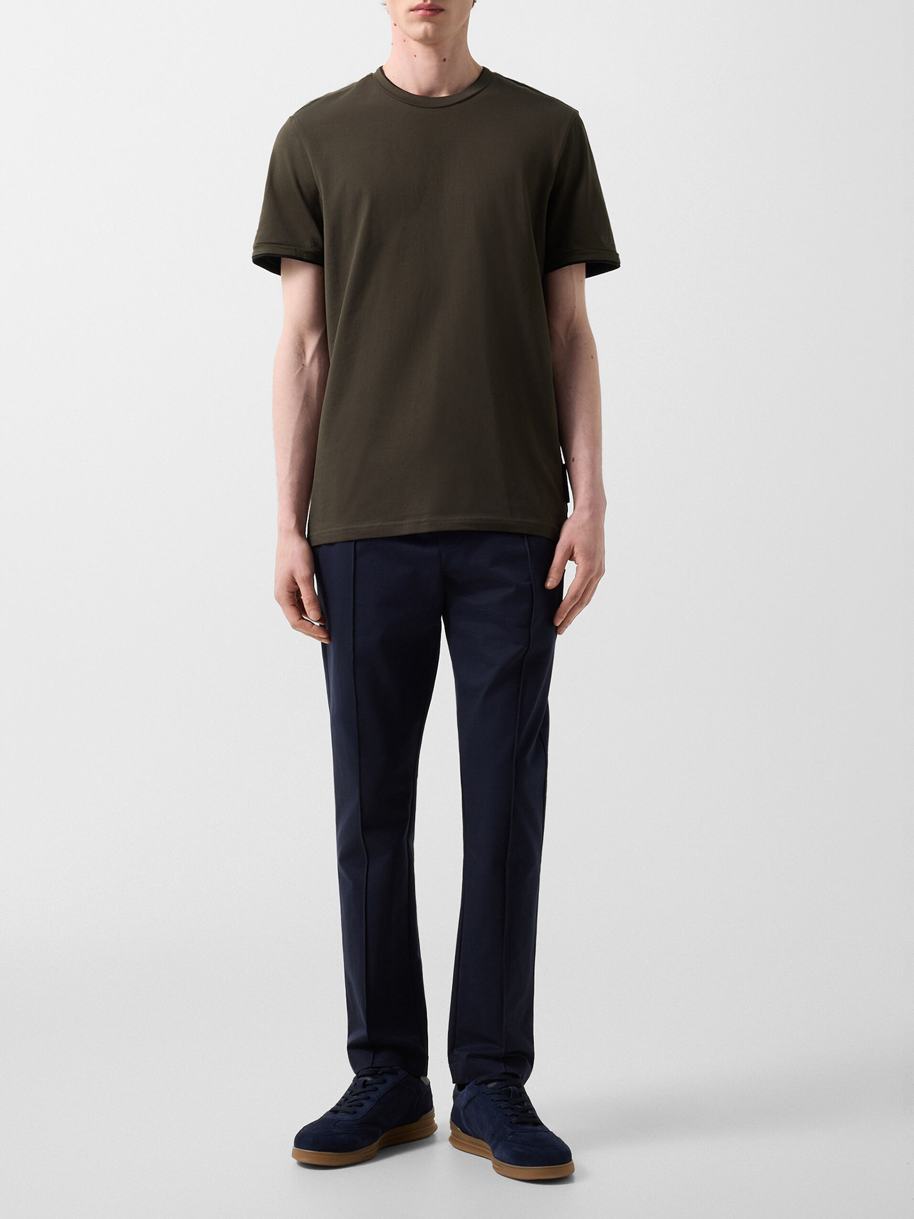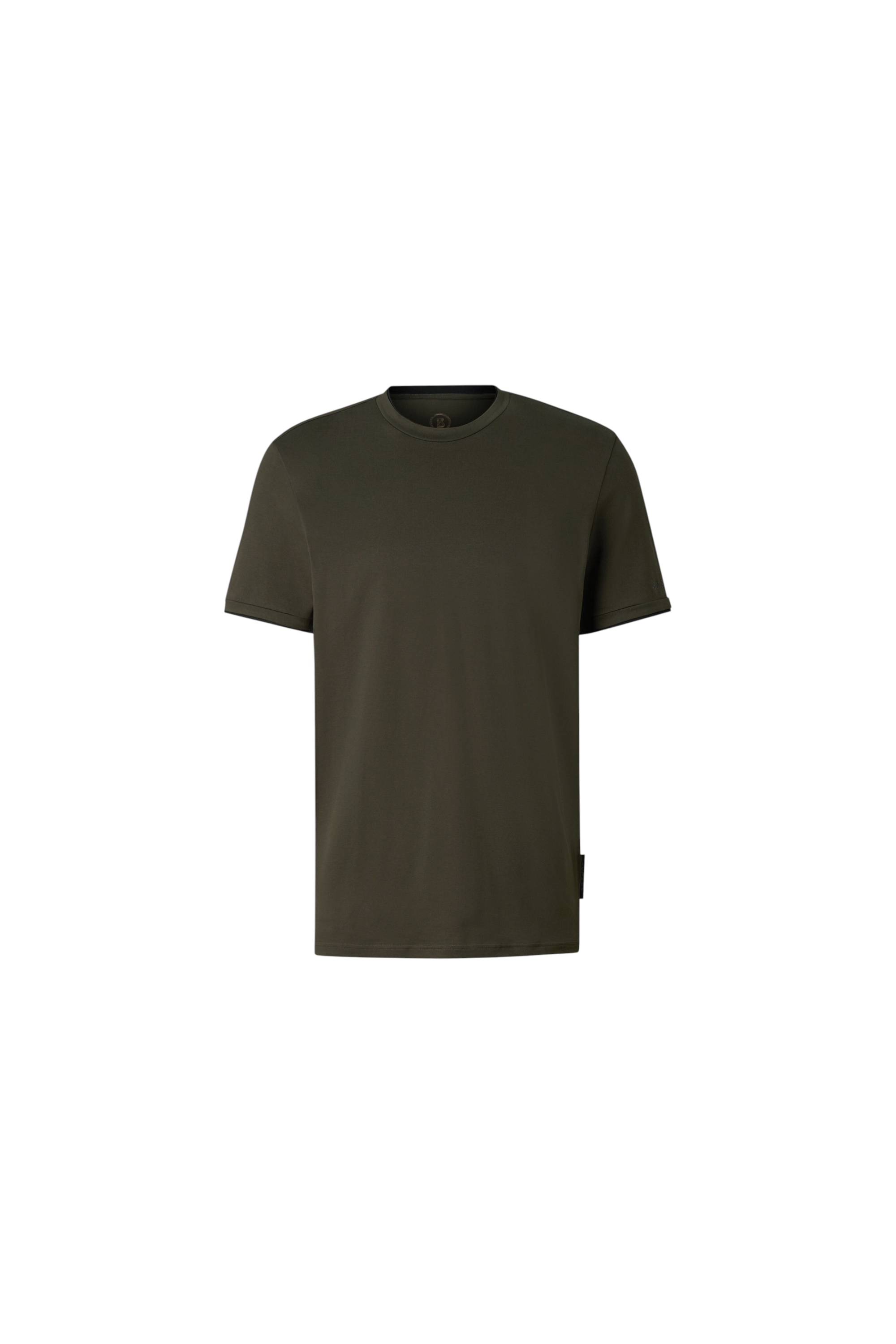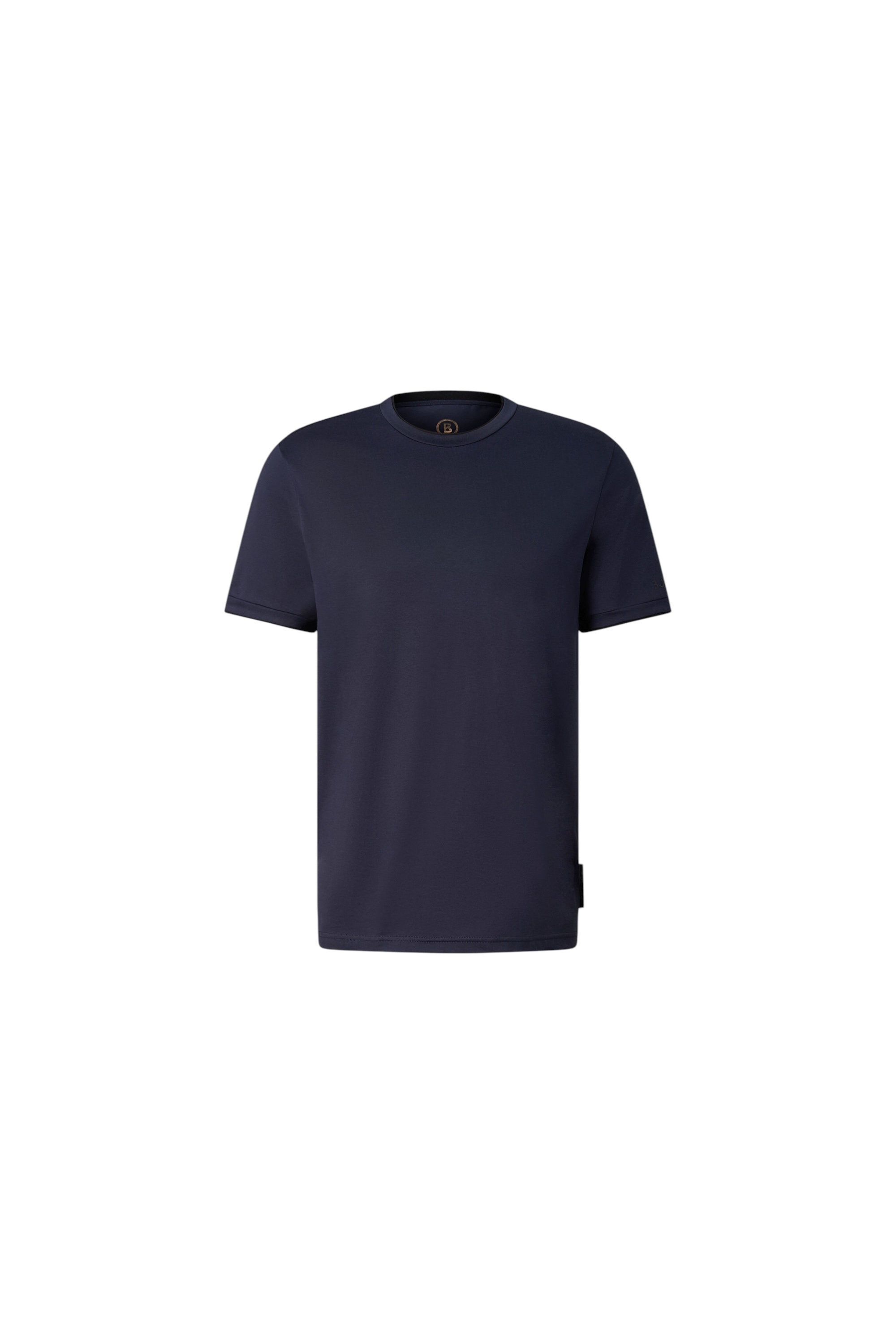 Универсальная футболка с классическим круглым вырезом дополнена на рукаве прорезиненным логотипом бренда.