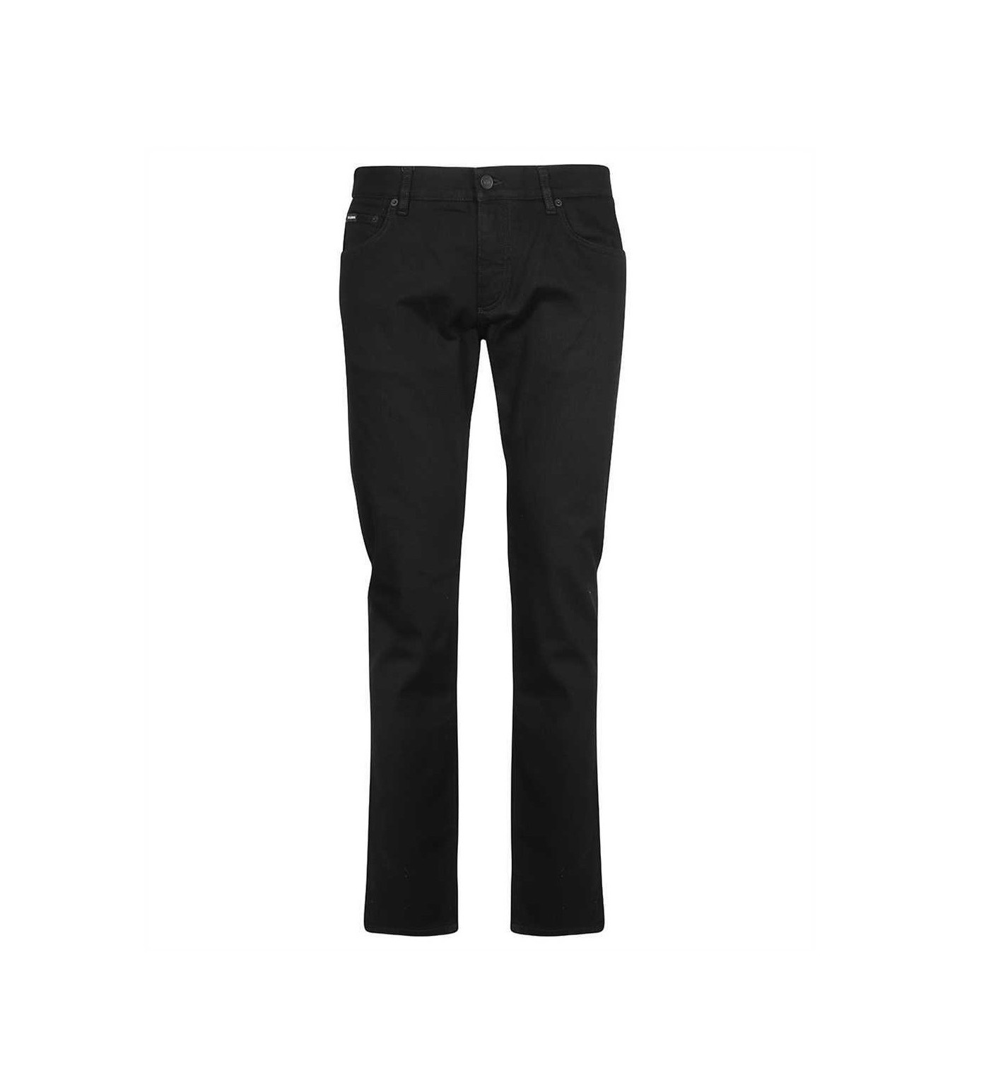 Лаконичные джинсы из хлопка с добавлением стрейчевых нитей и застежкой на молнию и пуговицу дополнены шлевками для ремня. Изделие украсили на заднем кармане фирменным логотипом бренда
