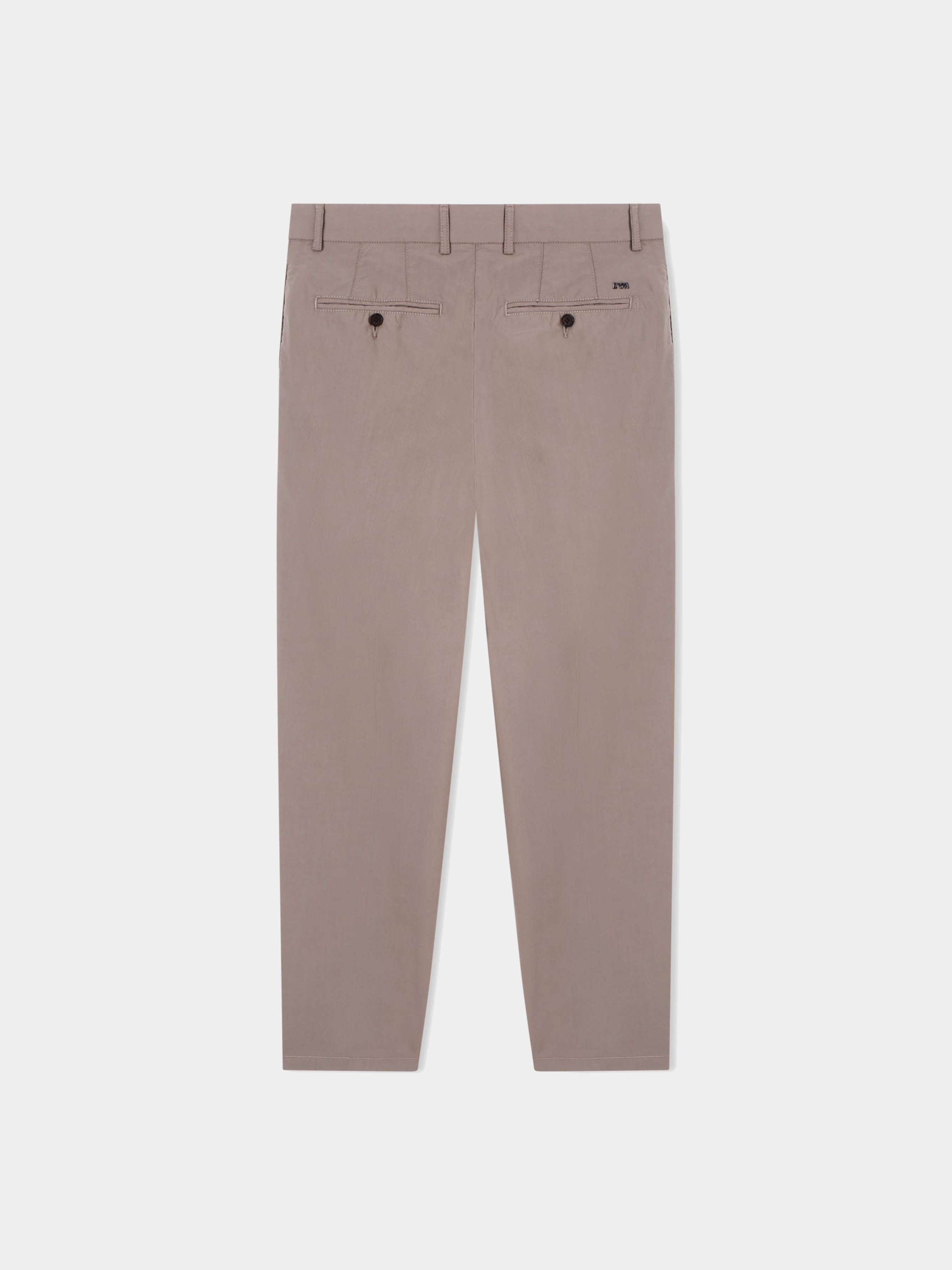 Брюки прямого кроя с застежкой на молнию и пуговицу дополнены шлевками для ремня, боковыми и задними прорезными карманами.