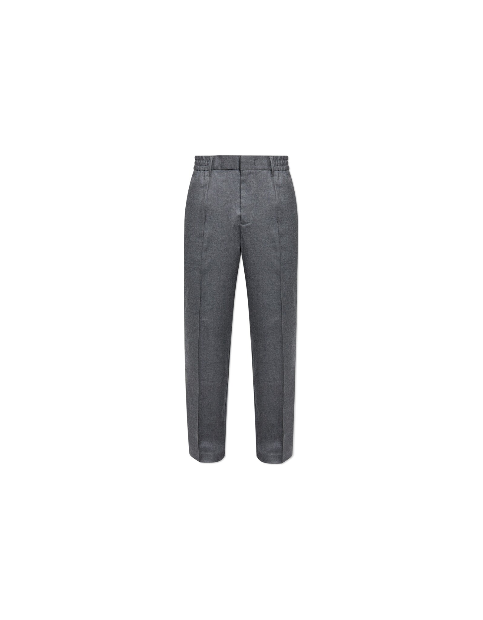 Классические брюки с боковыми и задними карманами дополнены эластичными вставками поясе. Модель сзади украсили фирменным металлическим логотипом бренда.