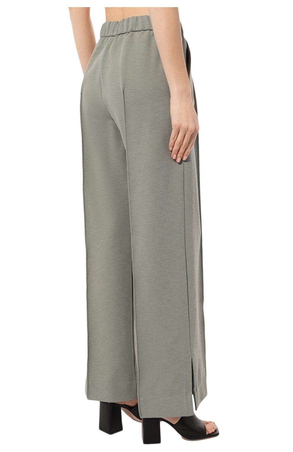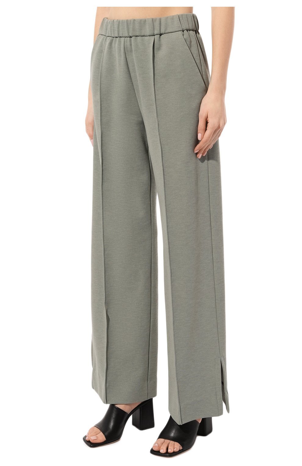 Широкие брюки из мягкого материала, который оптимально тянется и комфортно ощущается на теле, делая светло-зеленую модель удачным вложением в повседневный гардероб.