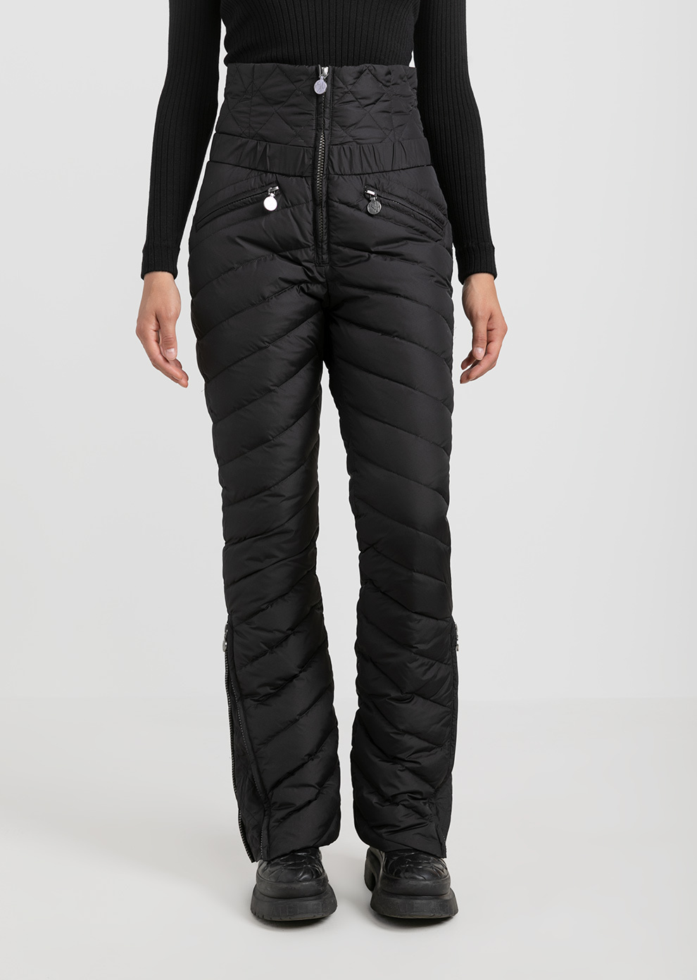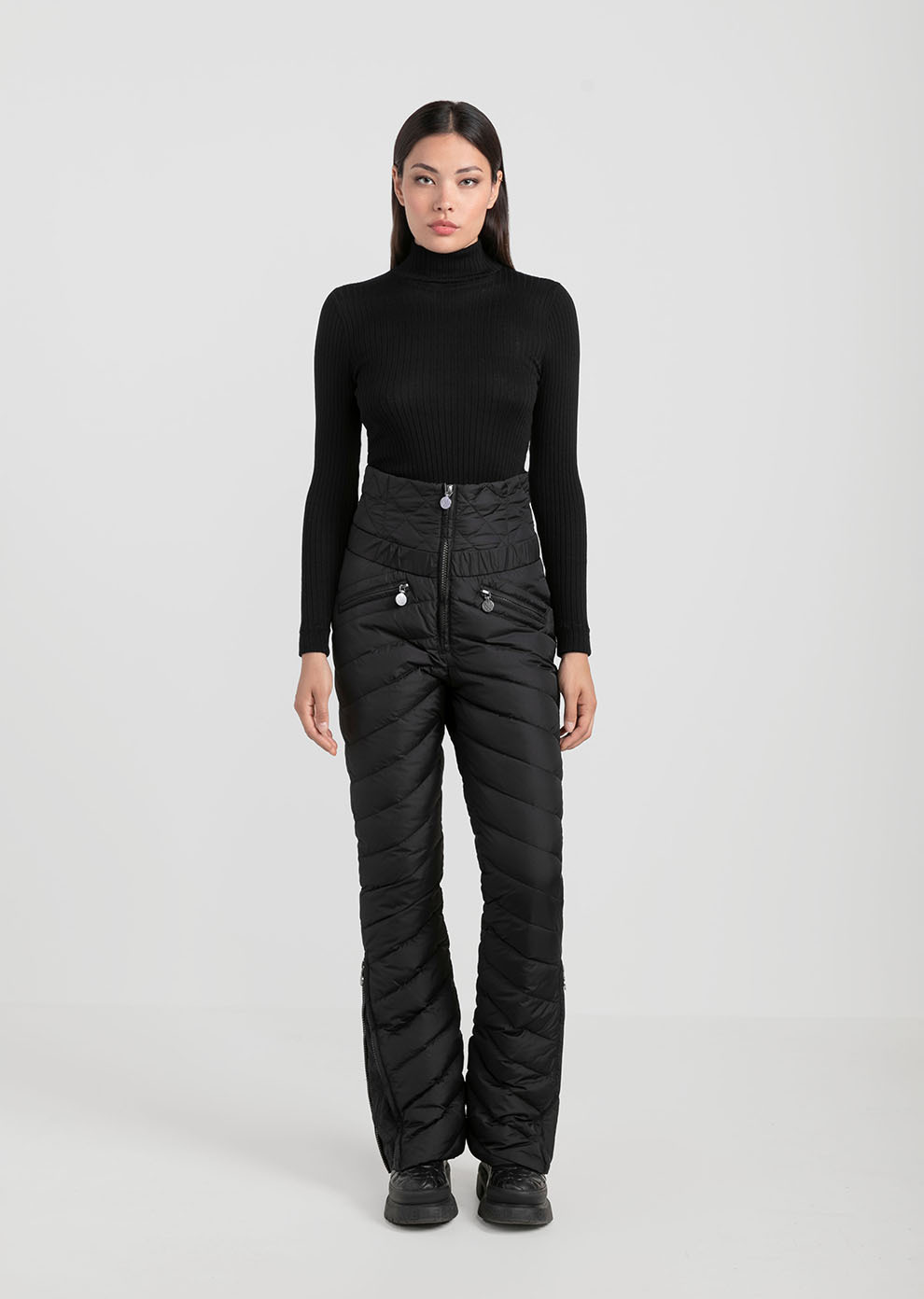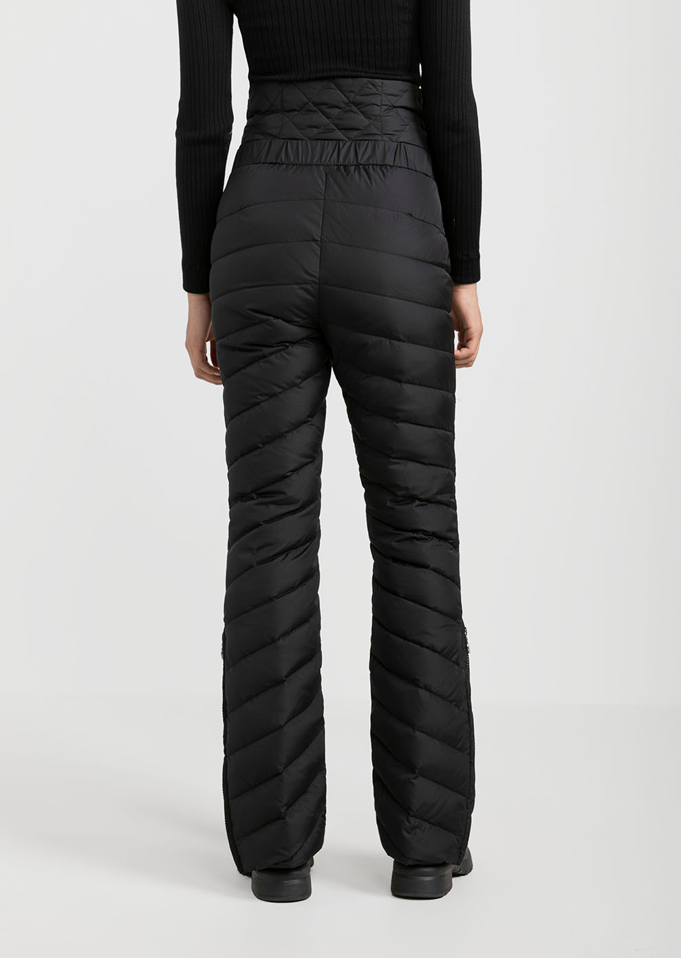 Утепленные пуховые брюки с завышенной посадкой - практичное и эффектное дополнение к гардеробу в стиле apres-ski. Благодаря составу наполнителя пух/перо в премиальном соотношении 90/10 модель лучше сохраняет тепло и остается практически невесомой, что, безусловно, важно во время зимнего отдыха.