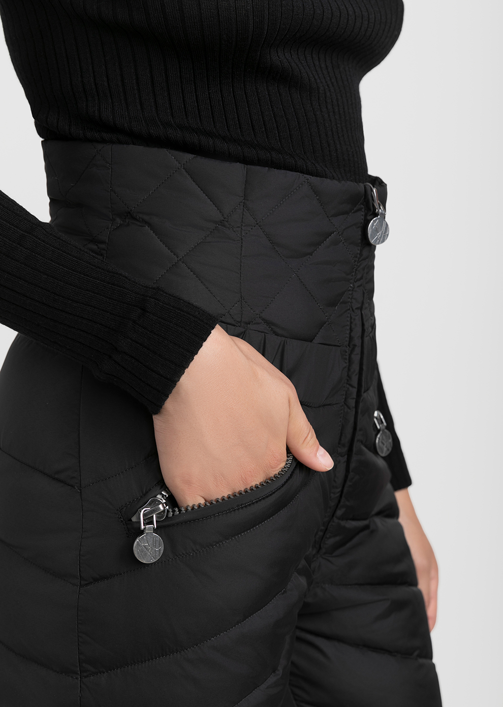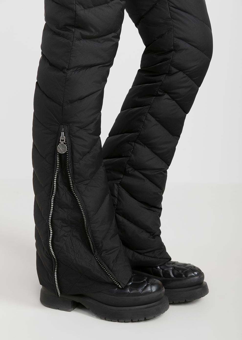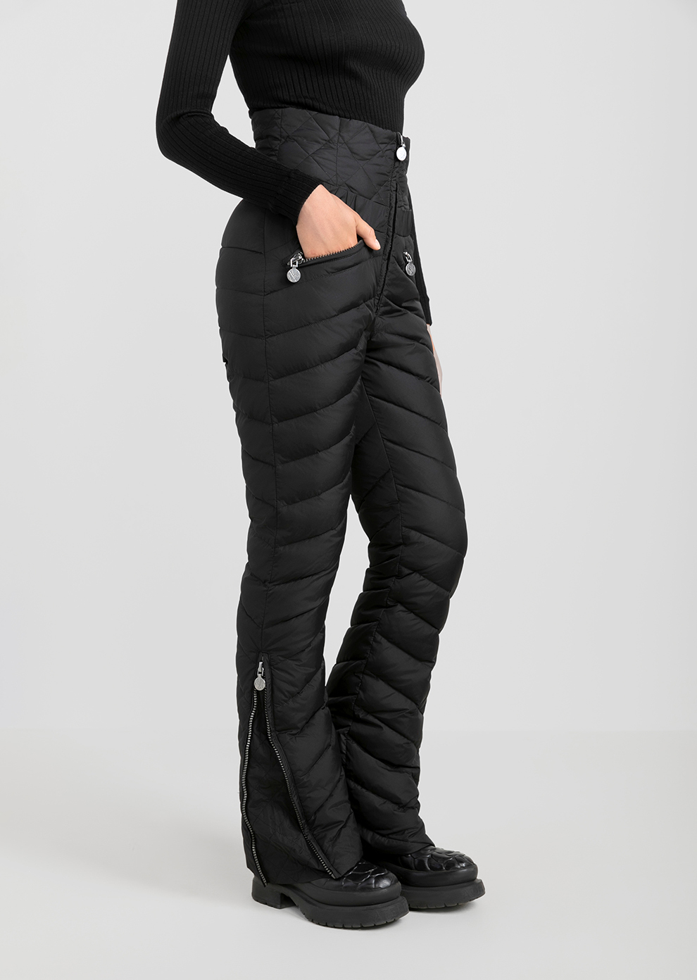 Утепленные пуховые брюки с завышенной посадкой - практичное и эффектное дополнение к гардеробу в стиле apres-ski. Благодаря составу наполнителя пух/перо в премиальном соотношении 90/10 модель лучше сохраняет тепло и остается практически невесомой, что, безусловно, важно во время зимнего отдыха.