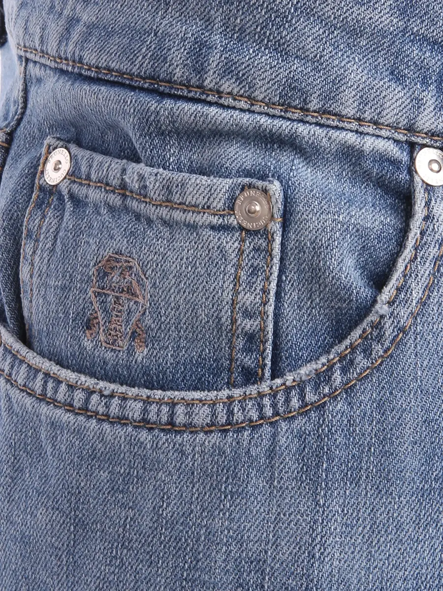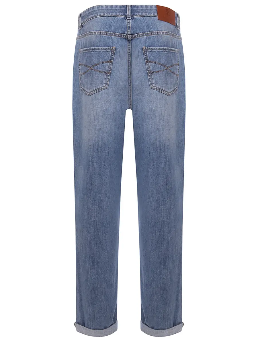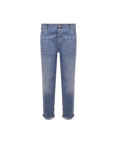 Джинсы из хлопка прямого кроя со средней посадкой, поясом со шлевками, прорезными и накладными карманами, с застежкой на молнию и пуговицу украшены фирменной нашивкой с логотипом бренда и дополнены отворотами в нижней части брючин. Такая модель органично дополнит непринужденный повседневный образ.
