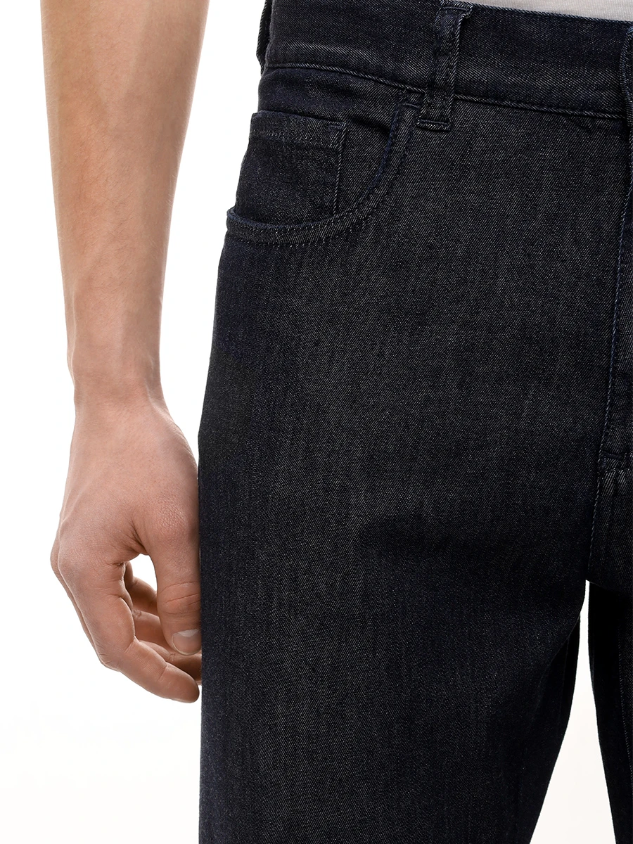 Джинсы упажированного состава прямого кроя со стандартной посадкой, поясом со шлевками, прорезными и накладными карманами, застежкой на молнию и пуговицу дополнены нашивкой с логотипом бренда сзади.