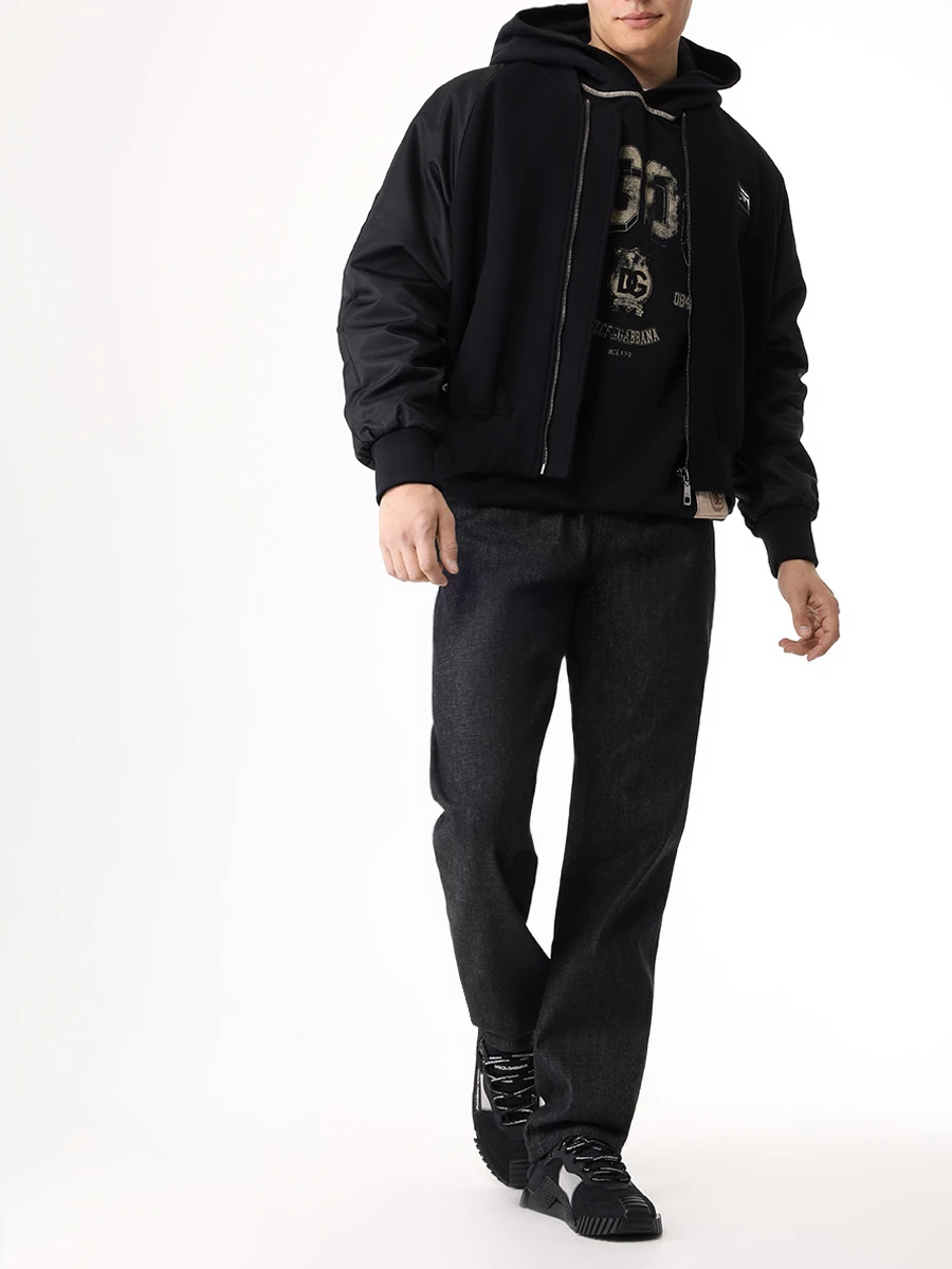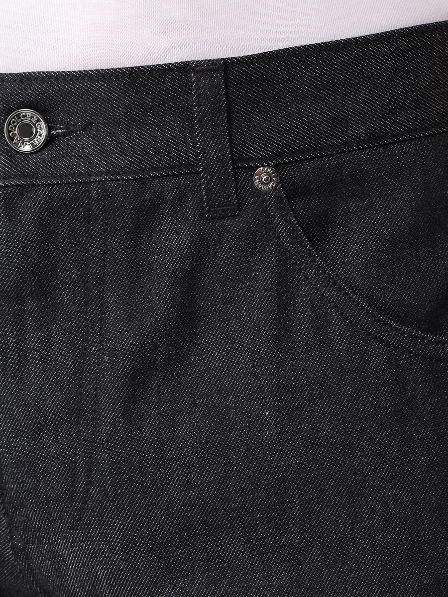 Джинсы из хлопка со стандартным кроем и посадкой, поясом со шлевками, прорезными и накладными карманами, застежкой на молнию и пуговицу дополнили нашивкой с логотипом бренда сзади.