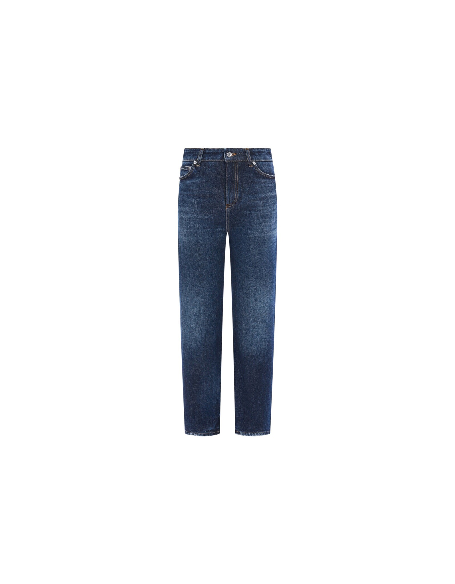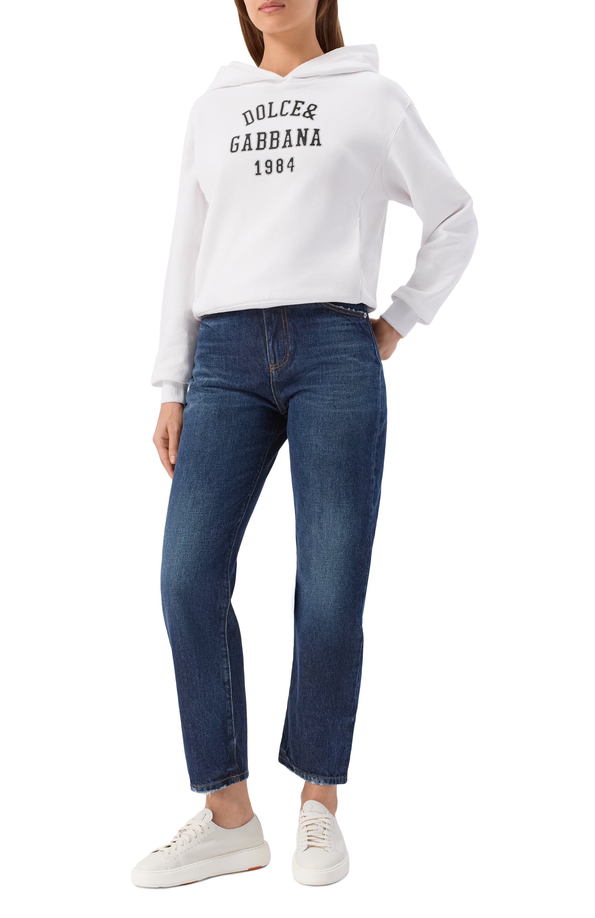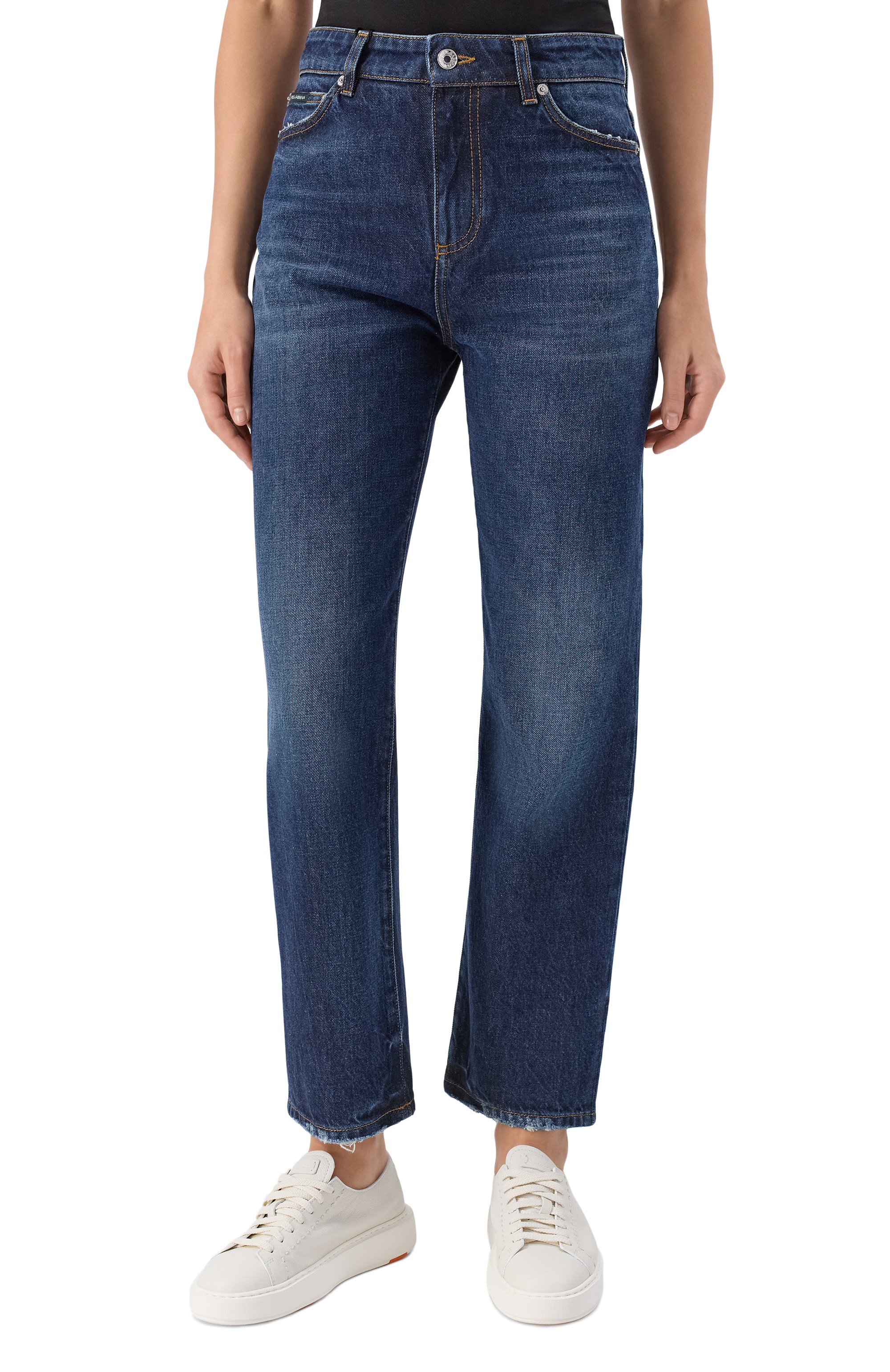 Слегка выбеленные джинсы кроя boyfriend из жесткого денима украсили нашивкой с логотипом спереди и фирменной многослойной пластиной на одном из пяти карманов.