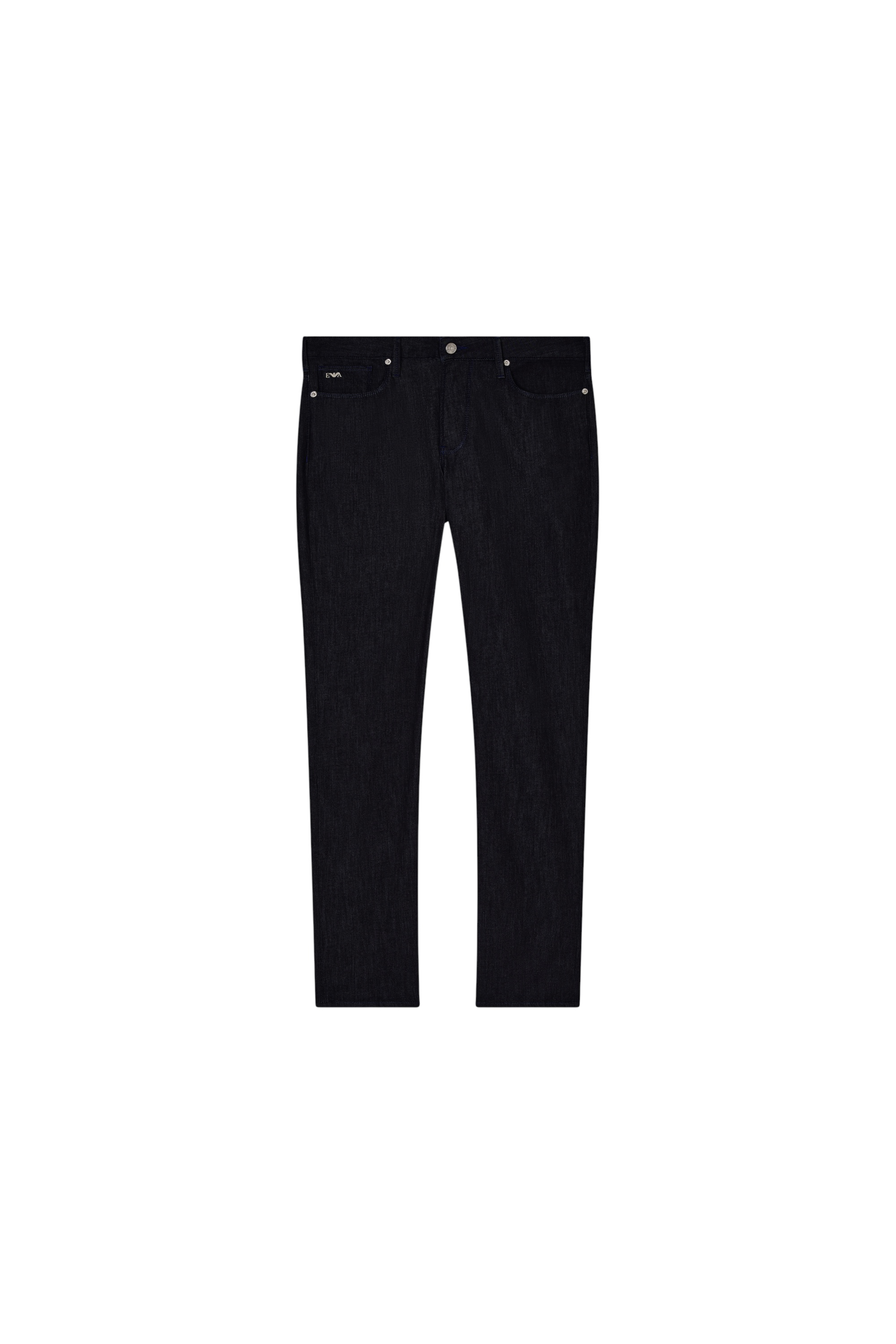 Джинсы с застежкой на молнию и пуговицу дополнены шлевками для ремня и фирменным металлическим логотипом бренда на монетном кармане.