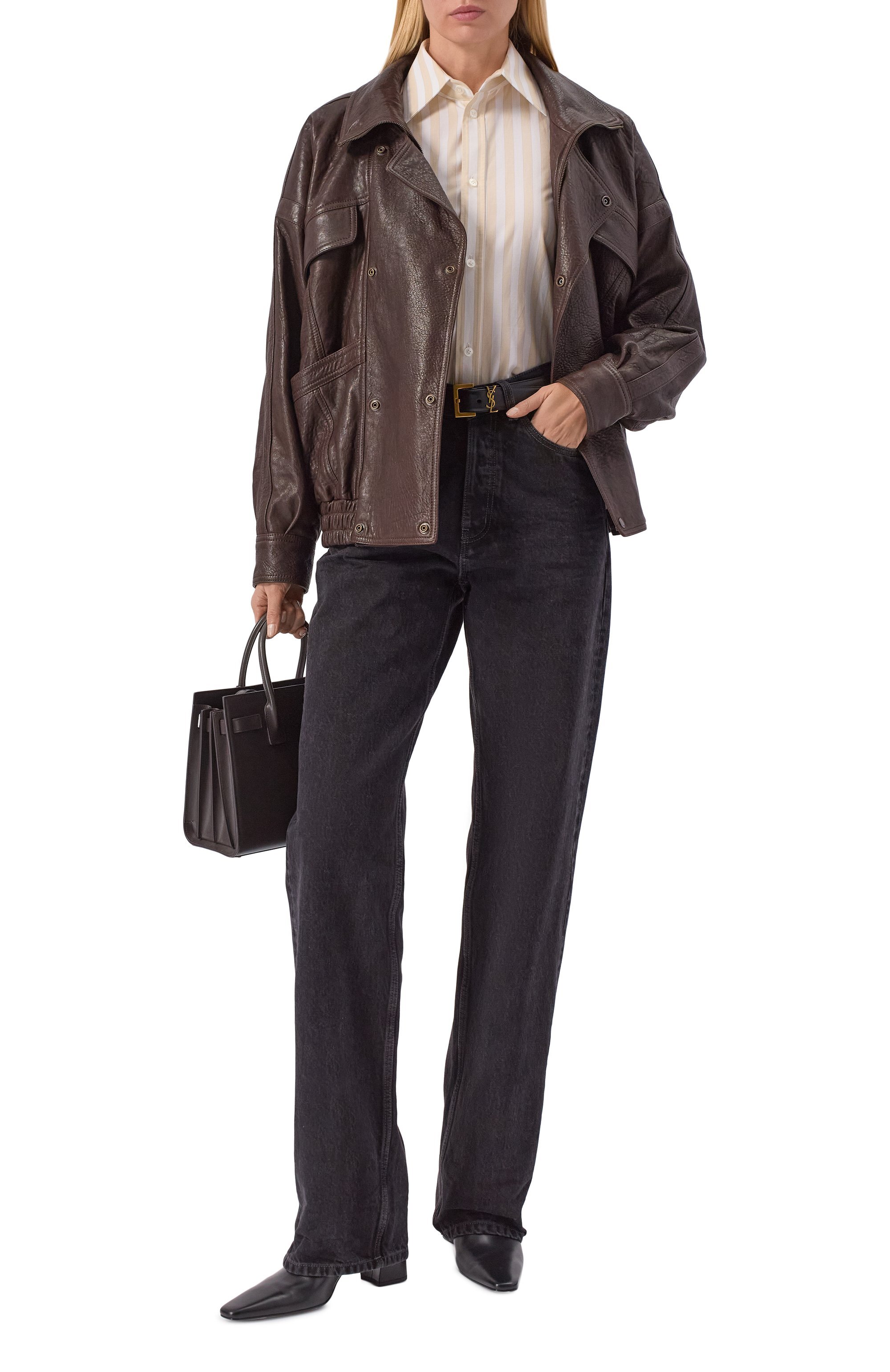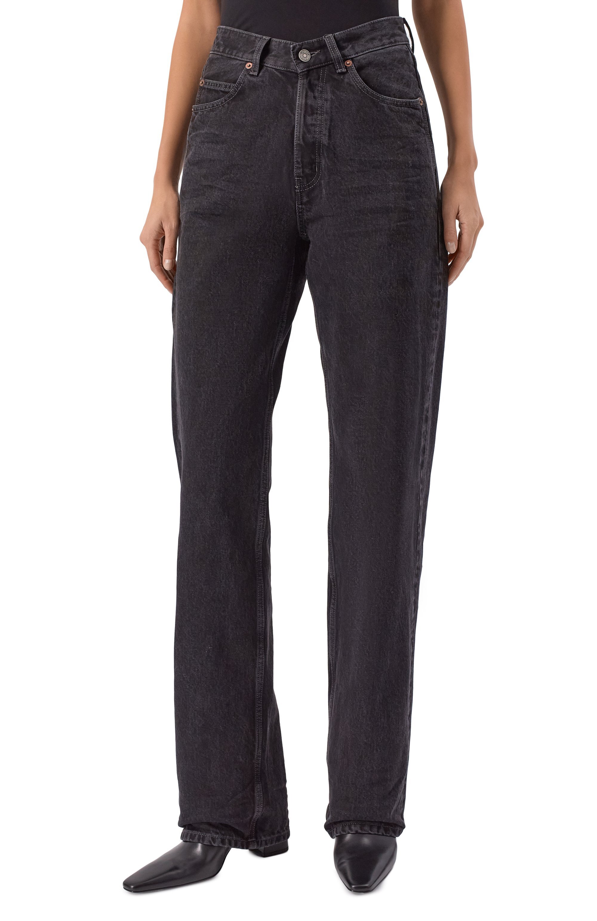 Лаконичные джинсы из плотного хлопка с застежкой на молнию и пуговицу дополнены шлевками для ремня. Изделие украсили сзади на поясе кожаным патчем с логотипом бренда.