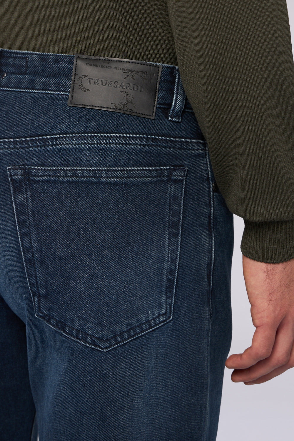 Классические джинсы с застежкой на молнию и пуговицу дополнены шлевками для ремня и украшены патчем с логотипом бренда на поясе. Такая модель прекрасно впишется в повседневные образы с футболками, джемперами или рубашками.