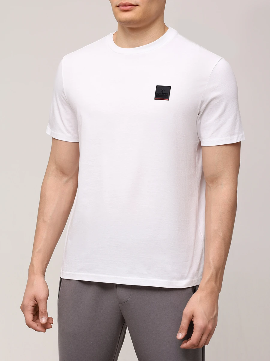 Футболка из мягкого хлопка прямого кроя с короткими рукавами, круглым вырезом горловины и фирменным логотипом бренда на груди. Такая модель станет базой как для спортивных образов, так и для повседневных аутфитов с джинсами, шортами или брюками.