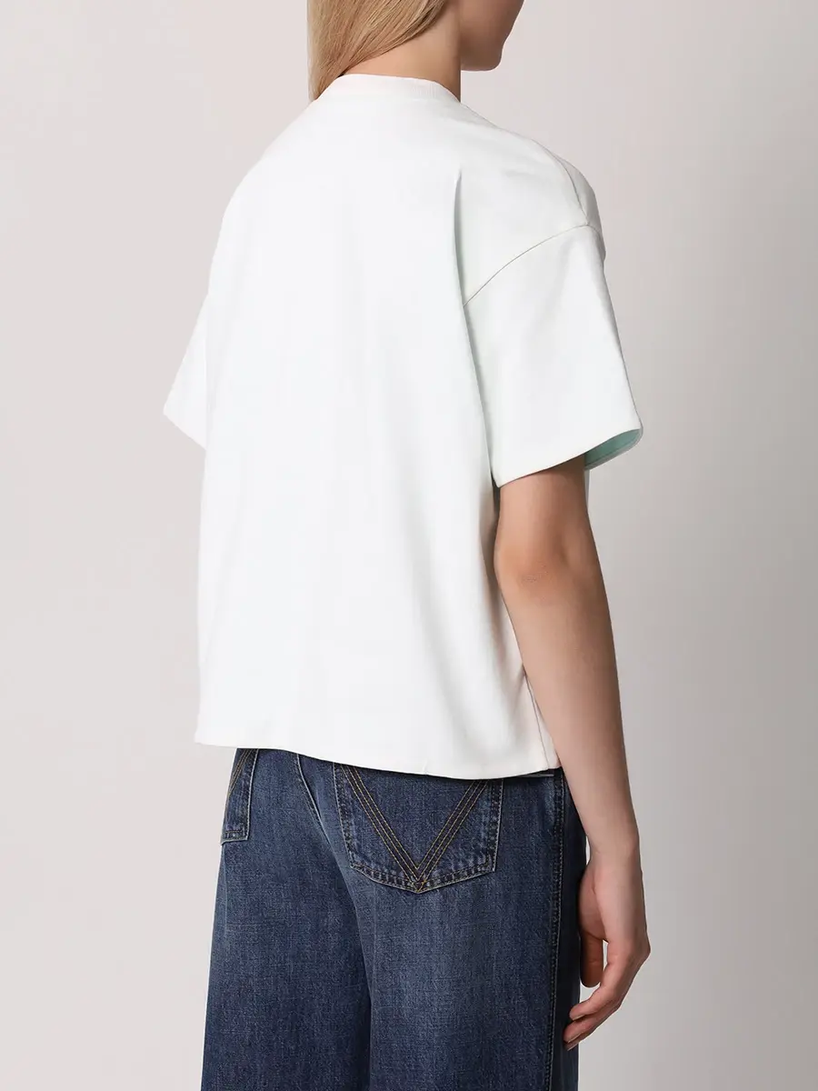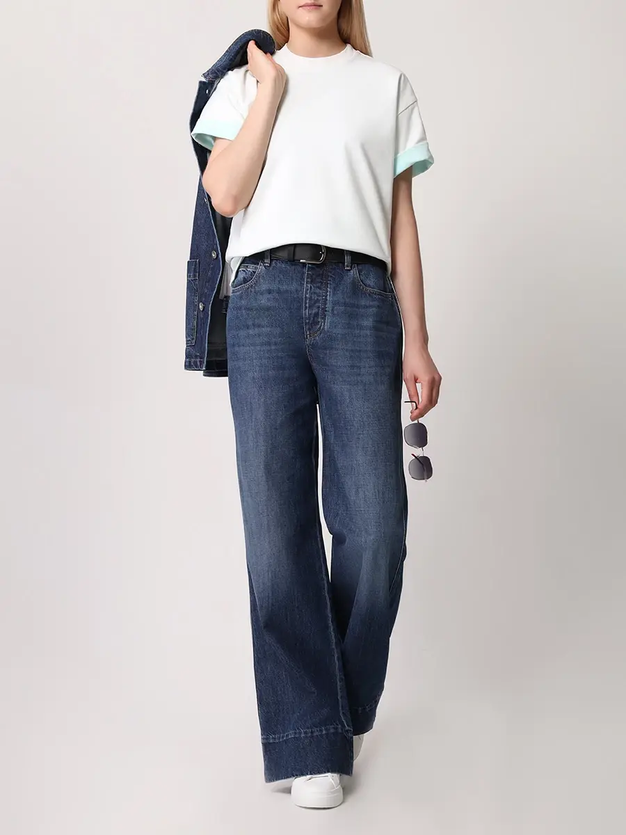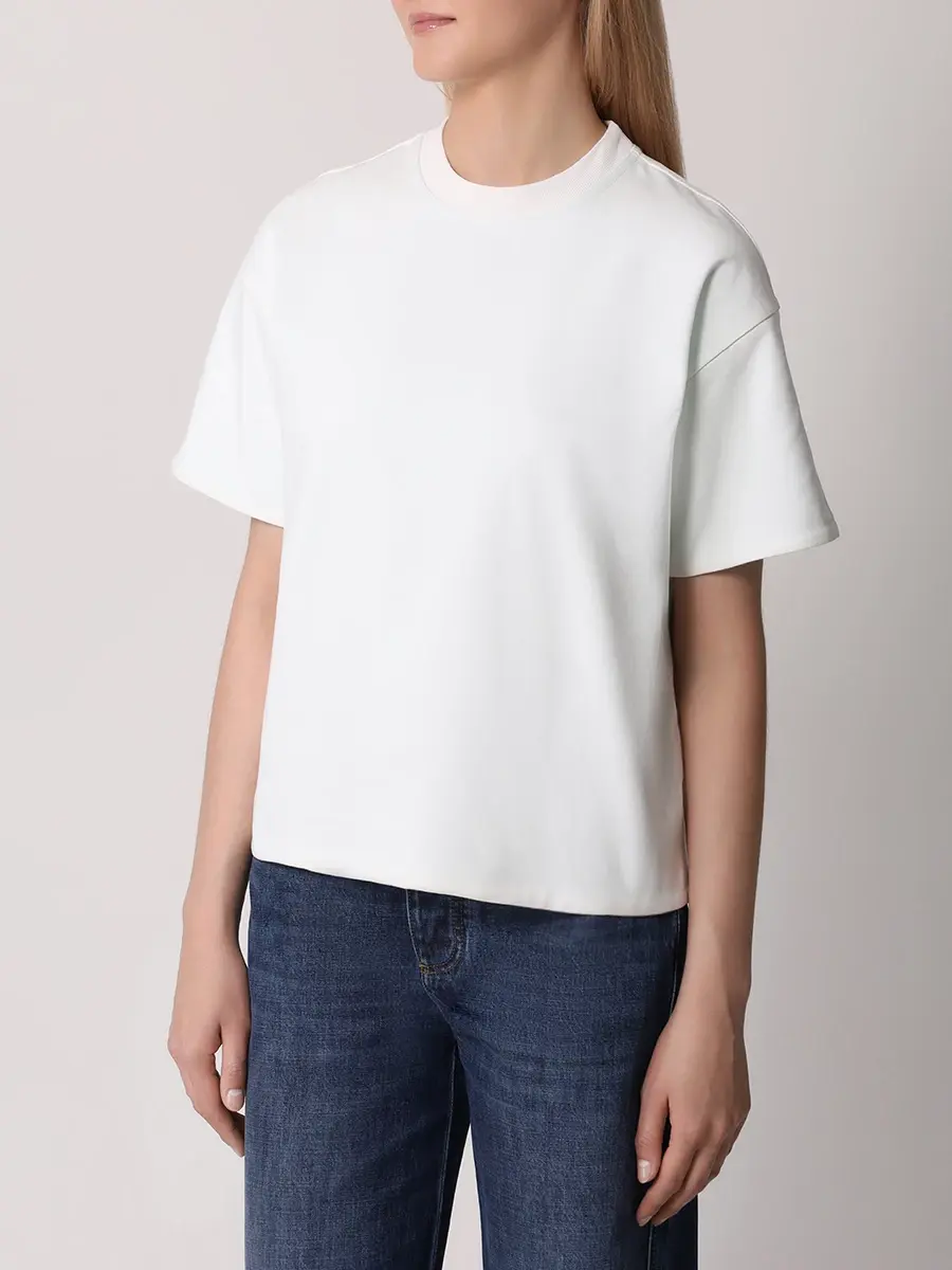 Футболка из мягкого хлопка свободного кроя со спущенной линией плеча, короткими рукавами, круглым вырезом горловины и контрастной изнаночной стороной. Такая модель станет базой как для спортивных образов, так и для повседневных аутфитов с джинсами, шортами или брюками