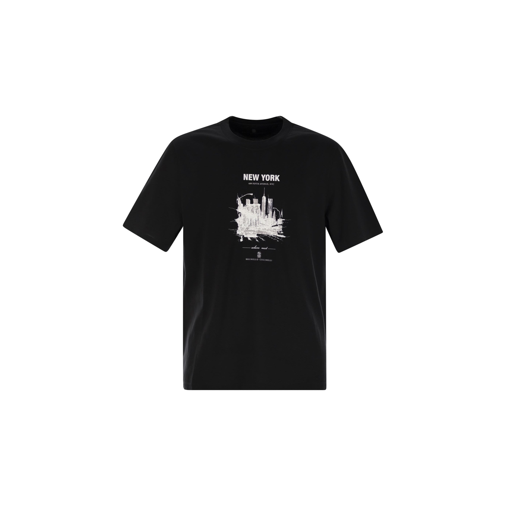 Футболка из хлопкового джерси отличается своей универсальной и неподвластной времени эстетикой, дополненной принтом, посвященным городам, в которых расположены Casa Cucinelli по всему миру.