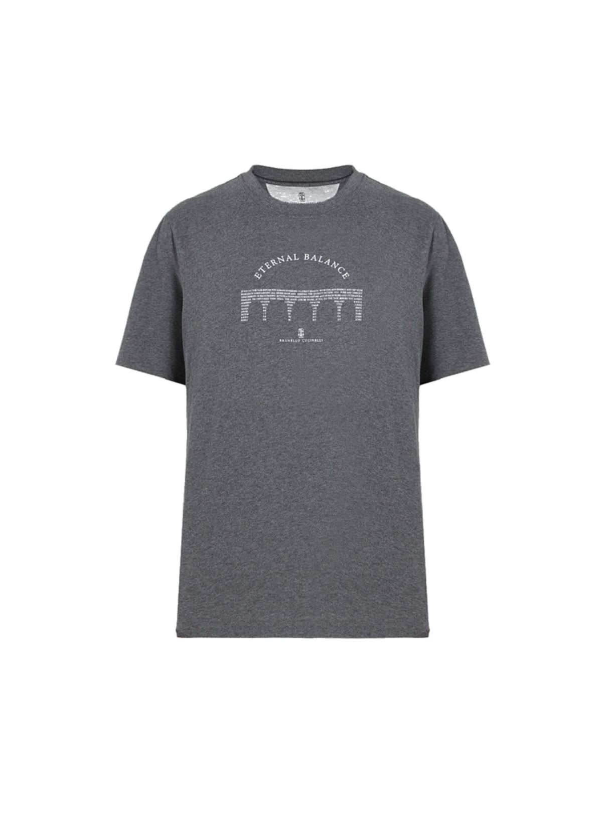 Стильная футболка с классическим круглым вырезом спереди украшена принтом с логотипом бренда.