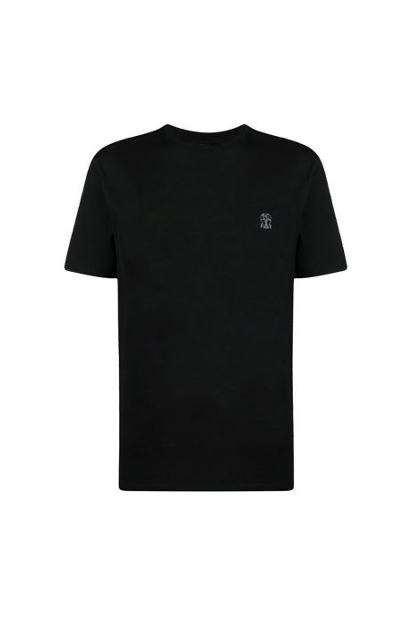 Лаконичная футболка приталенного силуэта с круглым вырезом спереди украшена фирменным логотипом бренда.