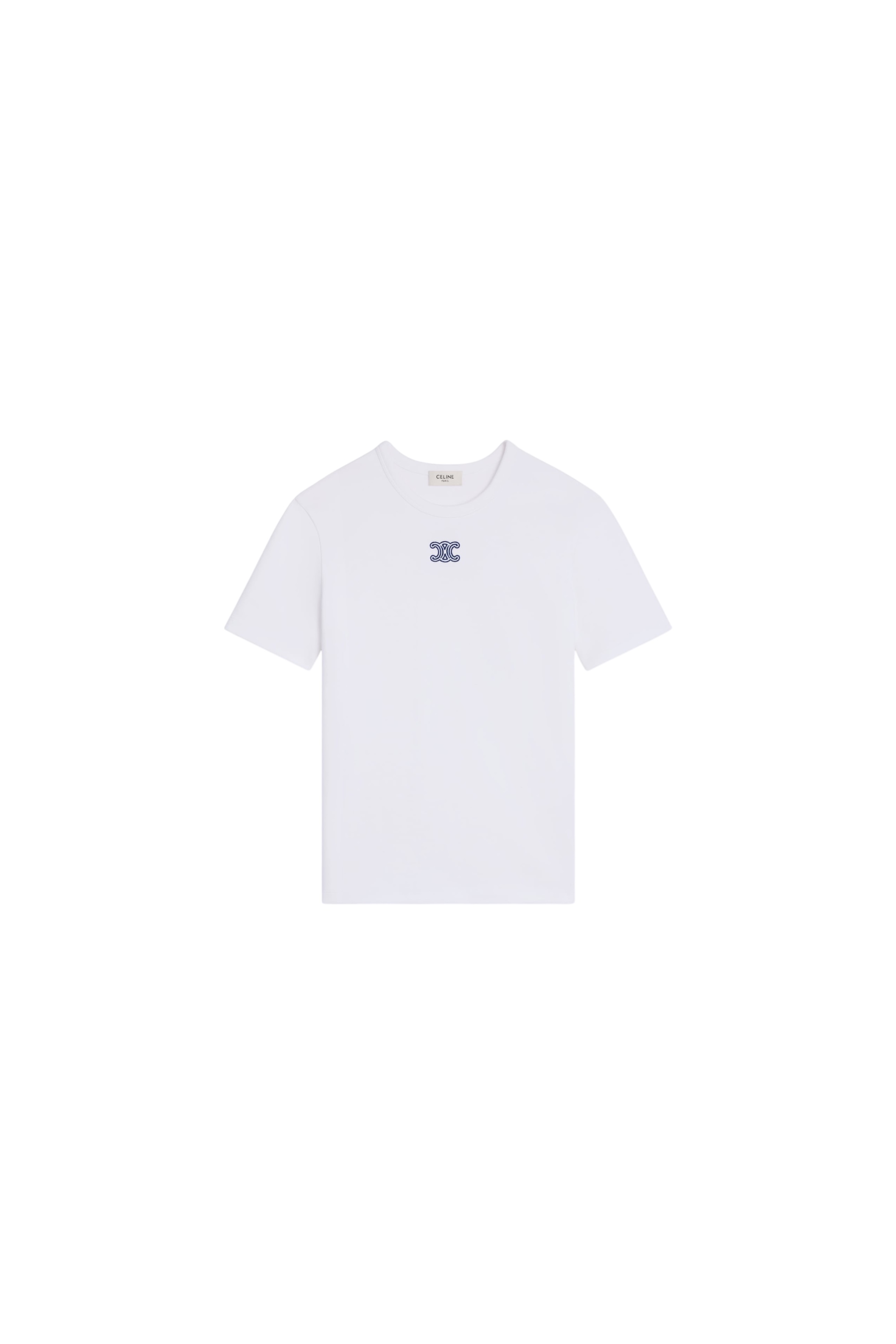 Футболка приталенного силуэта с круглым вырезом спереди украшена контрастным вышитым логотипом бренда.