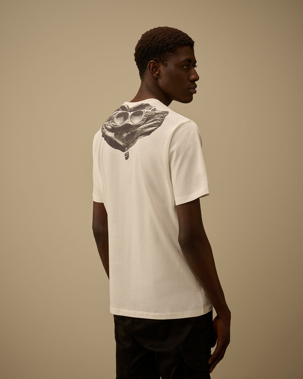 Унисерсальная хлопковая футболка с короткими рукавами и круглой горловиной дополнена спереди фирменным логотипом бренда и украшена на спине контрастным принтом.