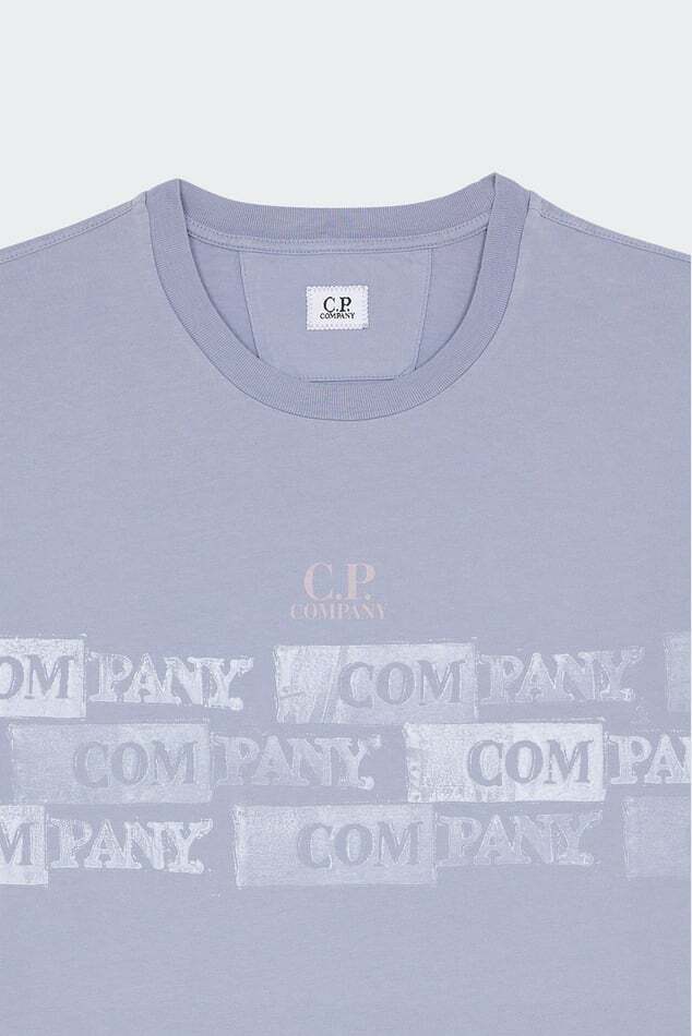 Футболка с круглым вырезом украшена спереди крупным принтом.