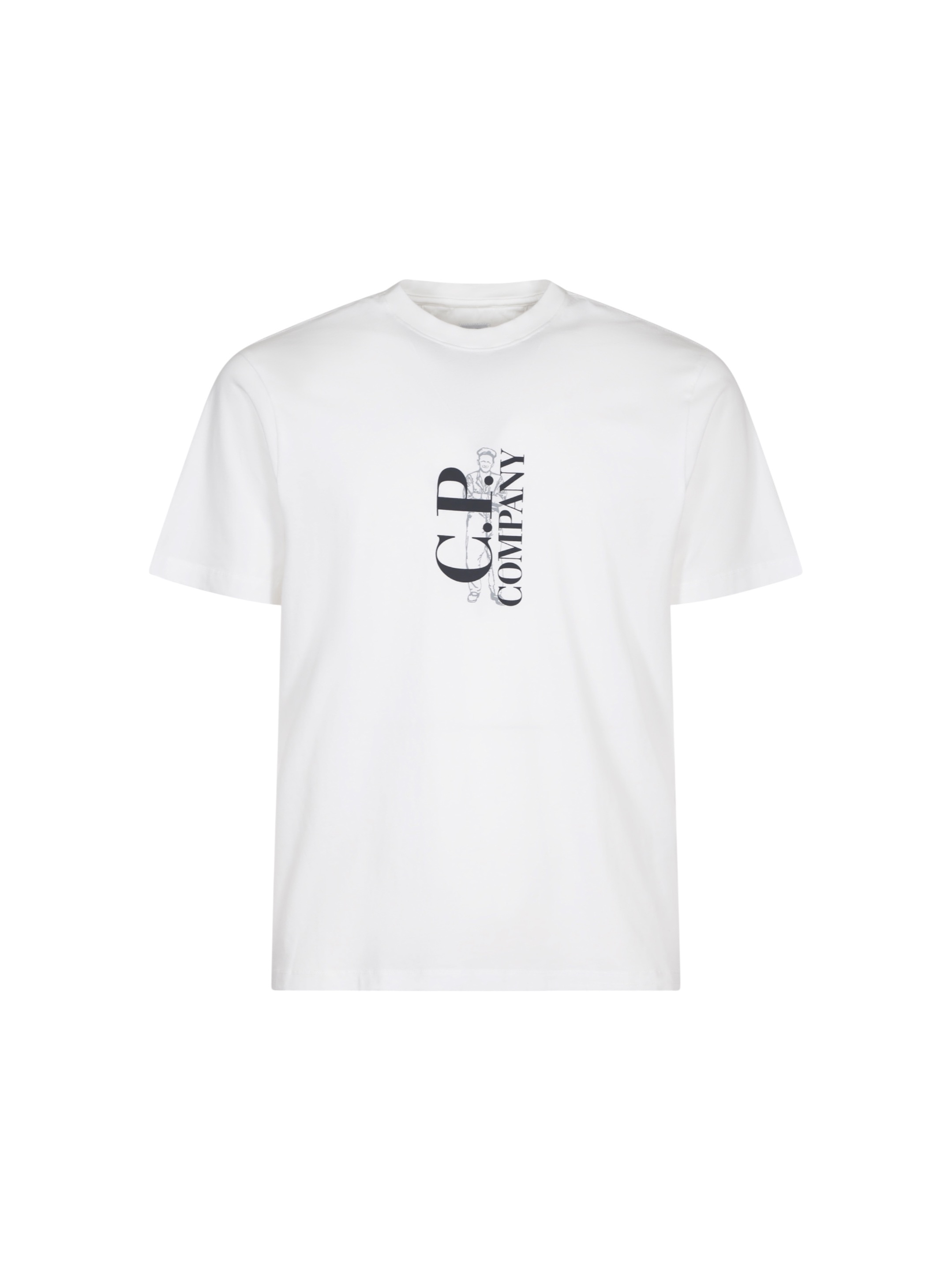 Хлопковая футболка с короткими рукавами и круглой горловиной, украшена белым графичным логотипом в сочетании с эмблемой в виде английского моряка.