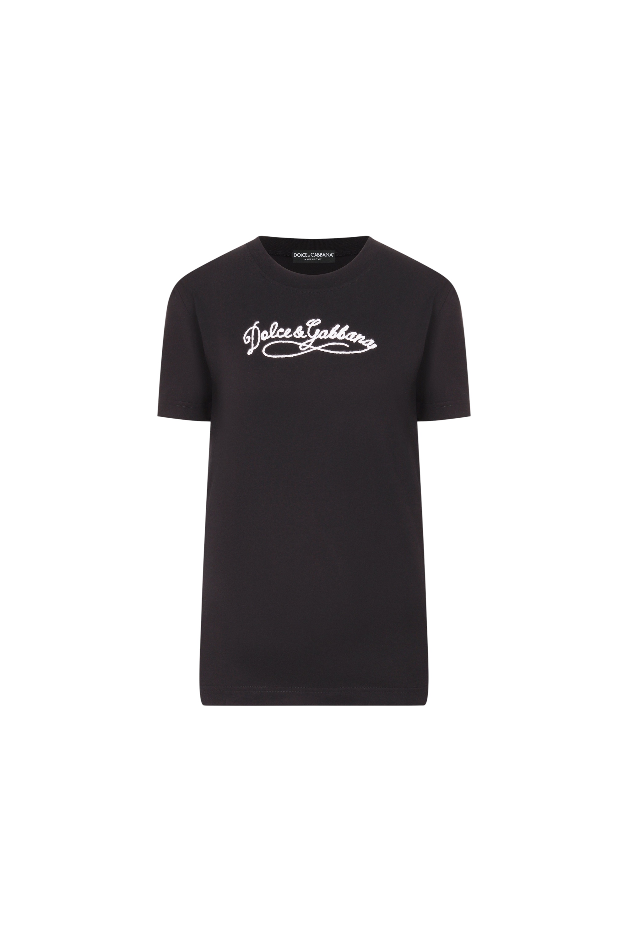 Футболка с круглой горловиной в рубчик из хлопкового джерси спереди украсили контрастным вышитым логотипом бренда.