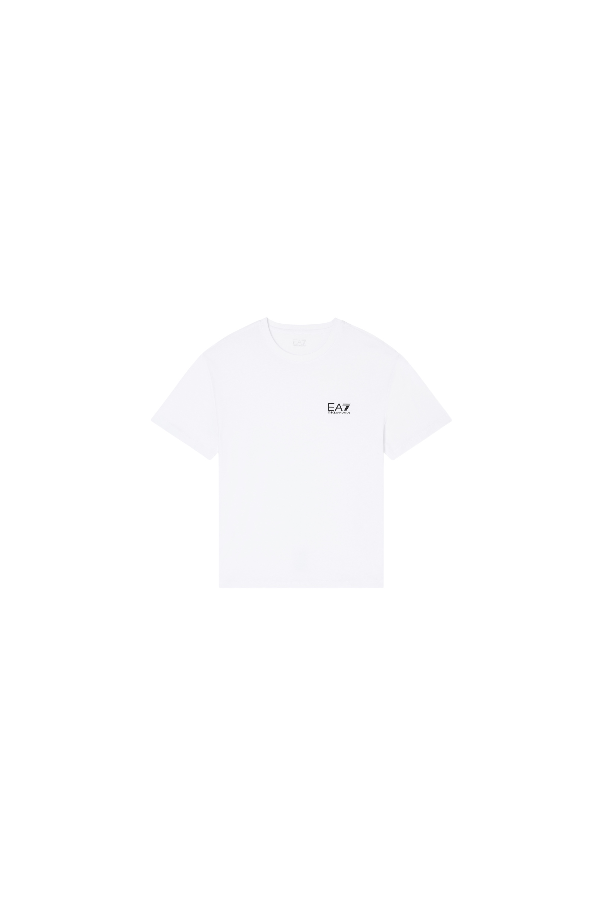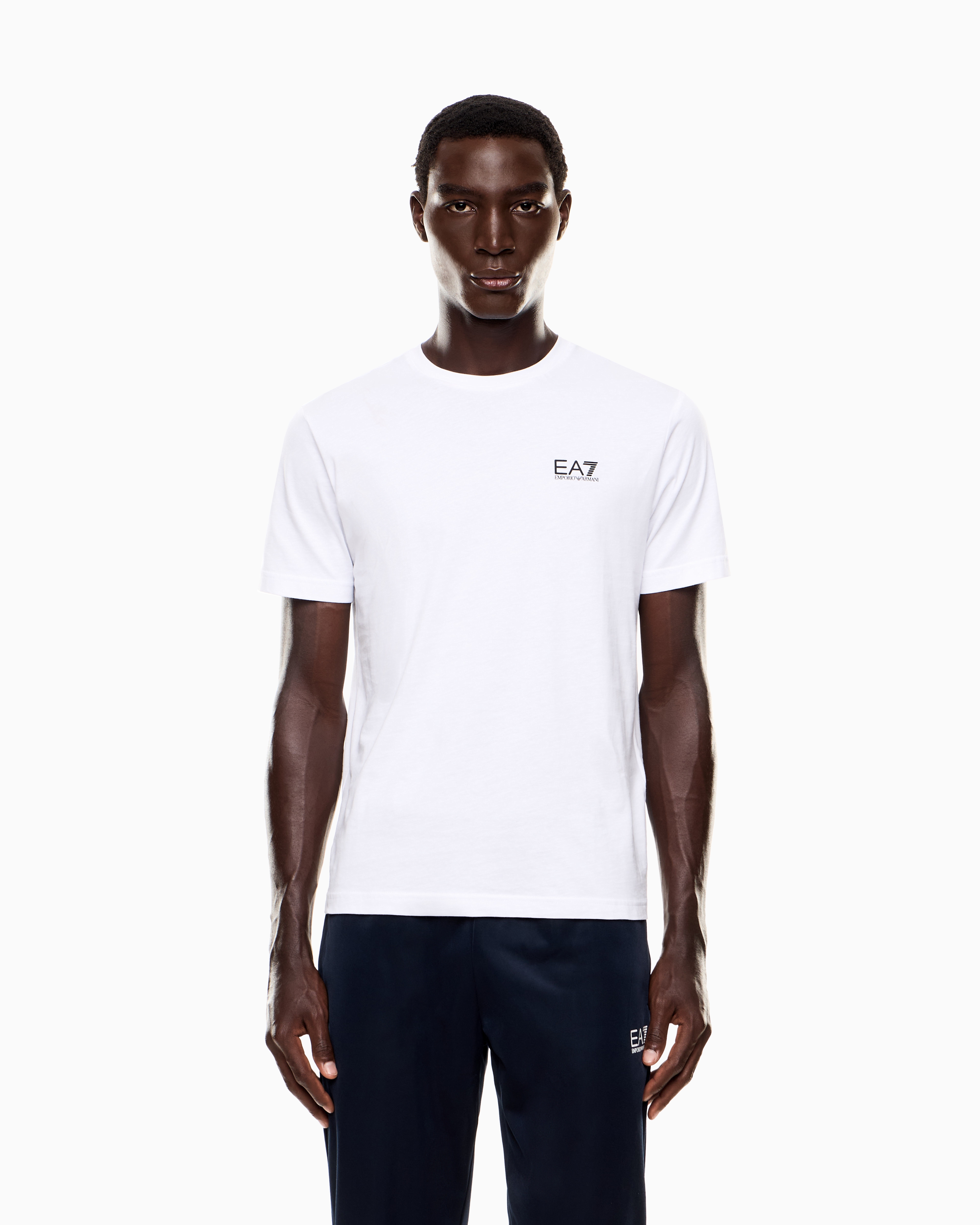 Футболка приталенного силуэта с классическим круглым вырезом дополнена фирменным контрастным логотипом бренда.