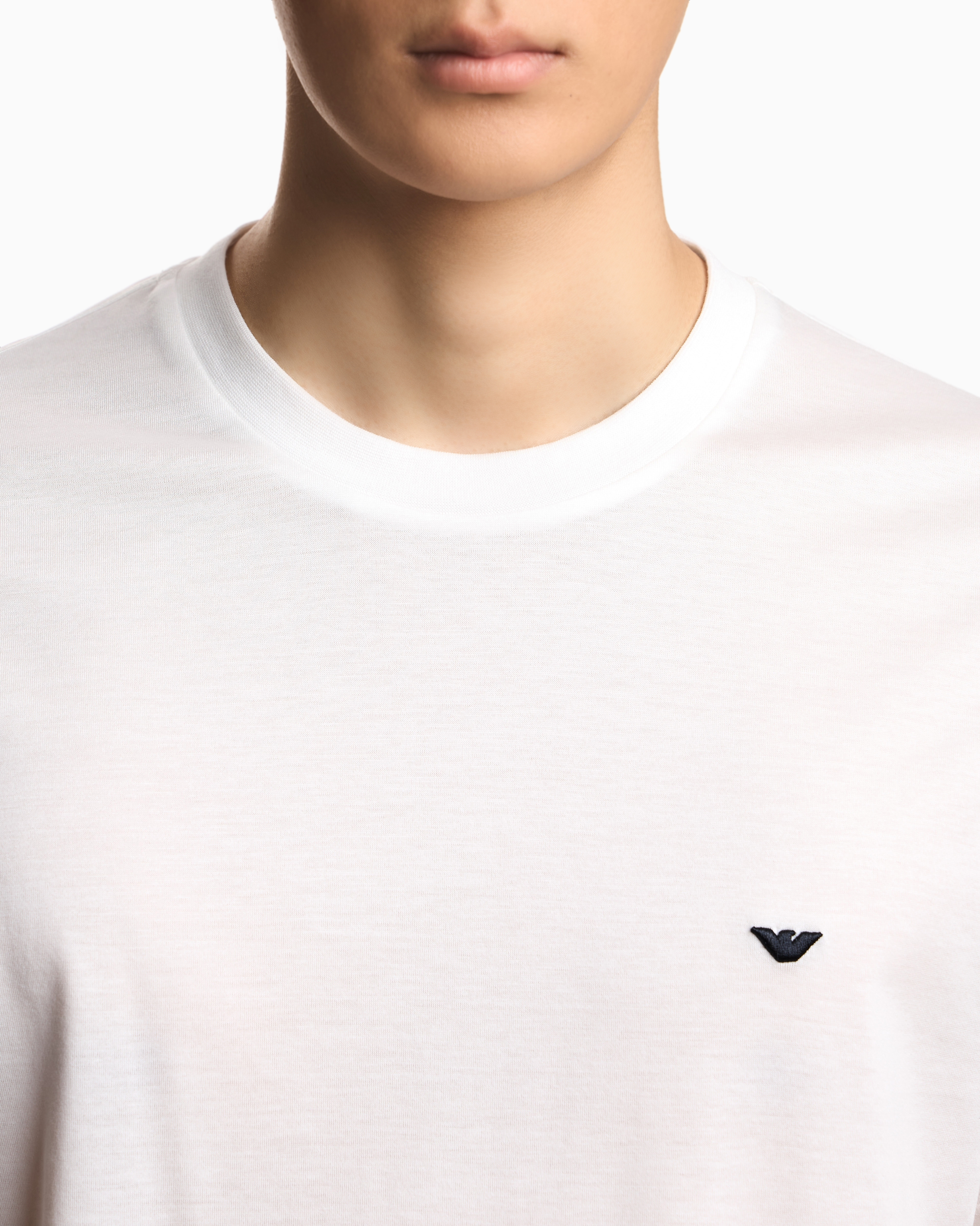 Футболка прямого кроя на основе гладкого джерси из лиоцелла с добавлением хлопка. Спереди модель с круглой горловиной декорировали вышитой эмблемой марки.