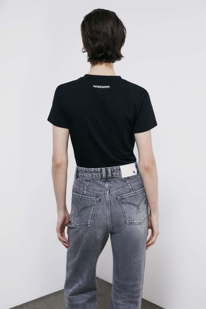 Футболка с круглой горловиной и короткими рукавами спереди дополнена контрастным принтом с логотипом бренда.