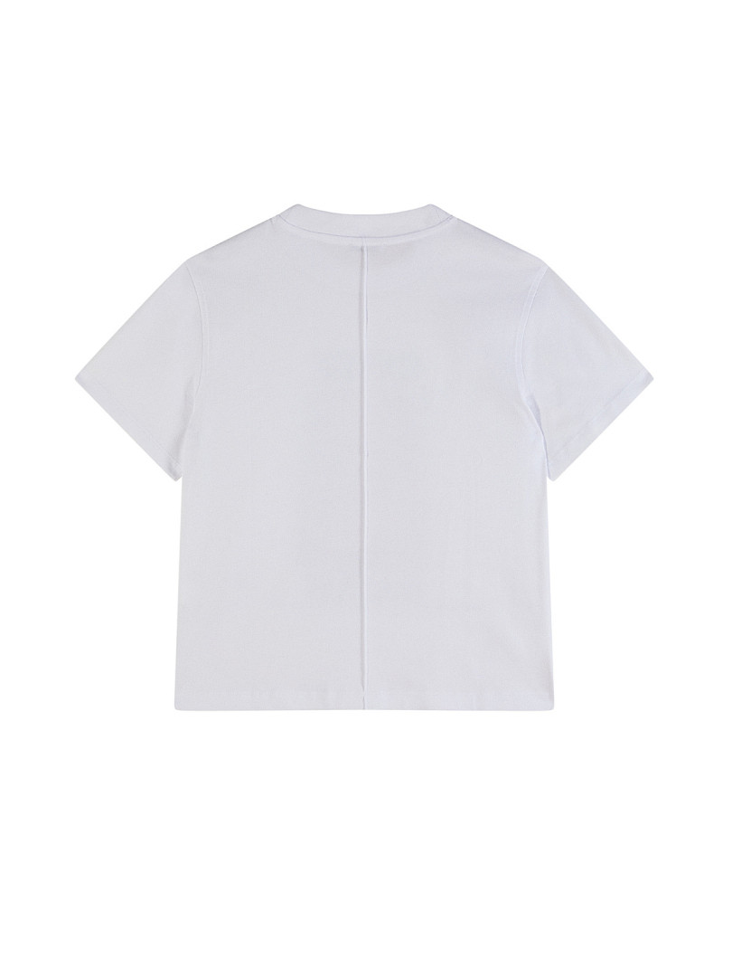 Футболка расслабленного силуэта с круглым вырезом дополнена эффектным принтом спереди и декоративным швом сзади.