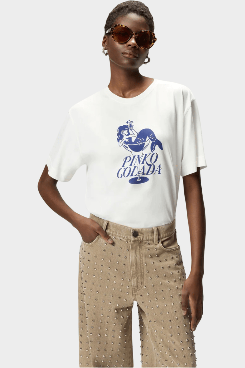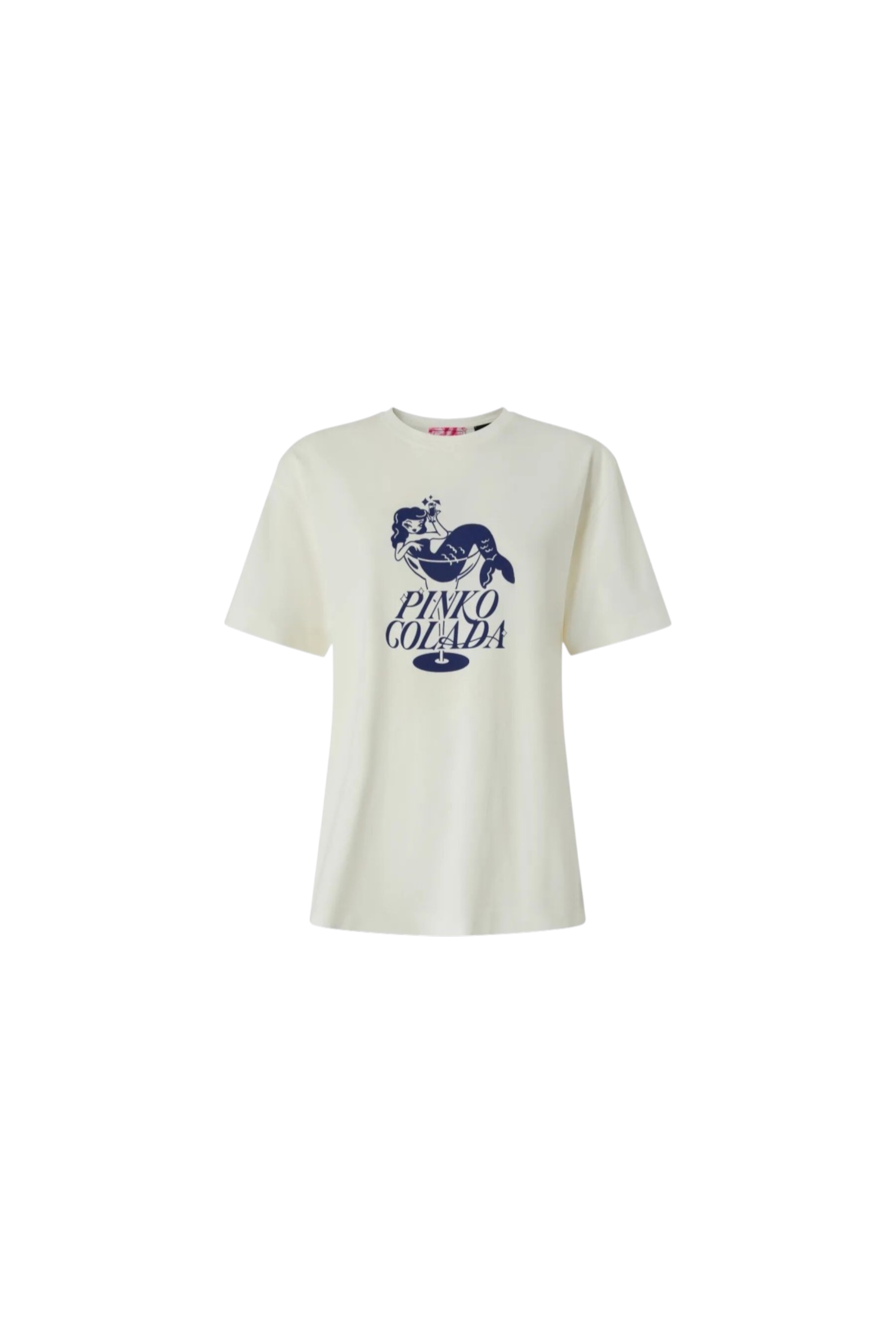 Футболка с круглой горловиной и короткими рукавами расслабленного силуэта украшена контрастным принтом спереди.