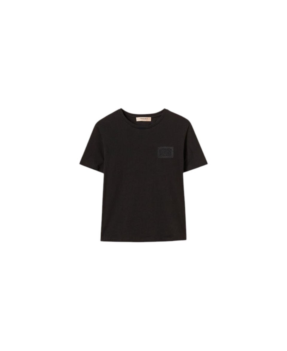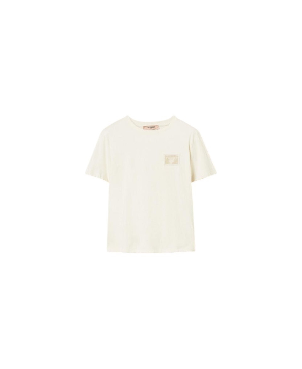 Футболка с классическим круглым вырезом дополнена полупрозрачной вышивкой с логотипом бренда.