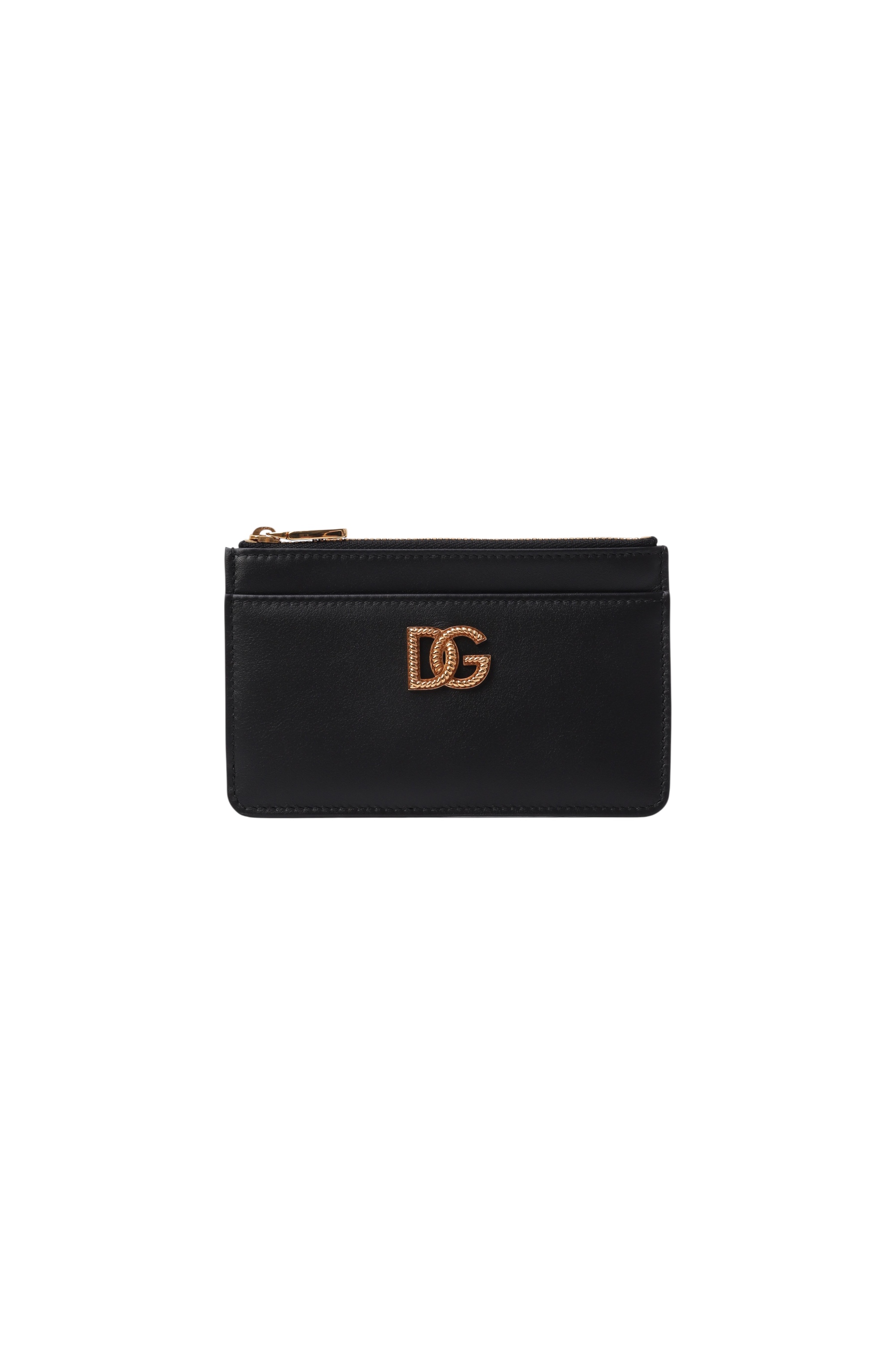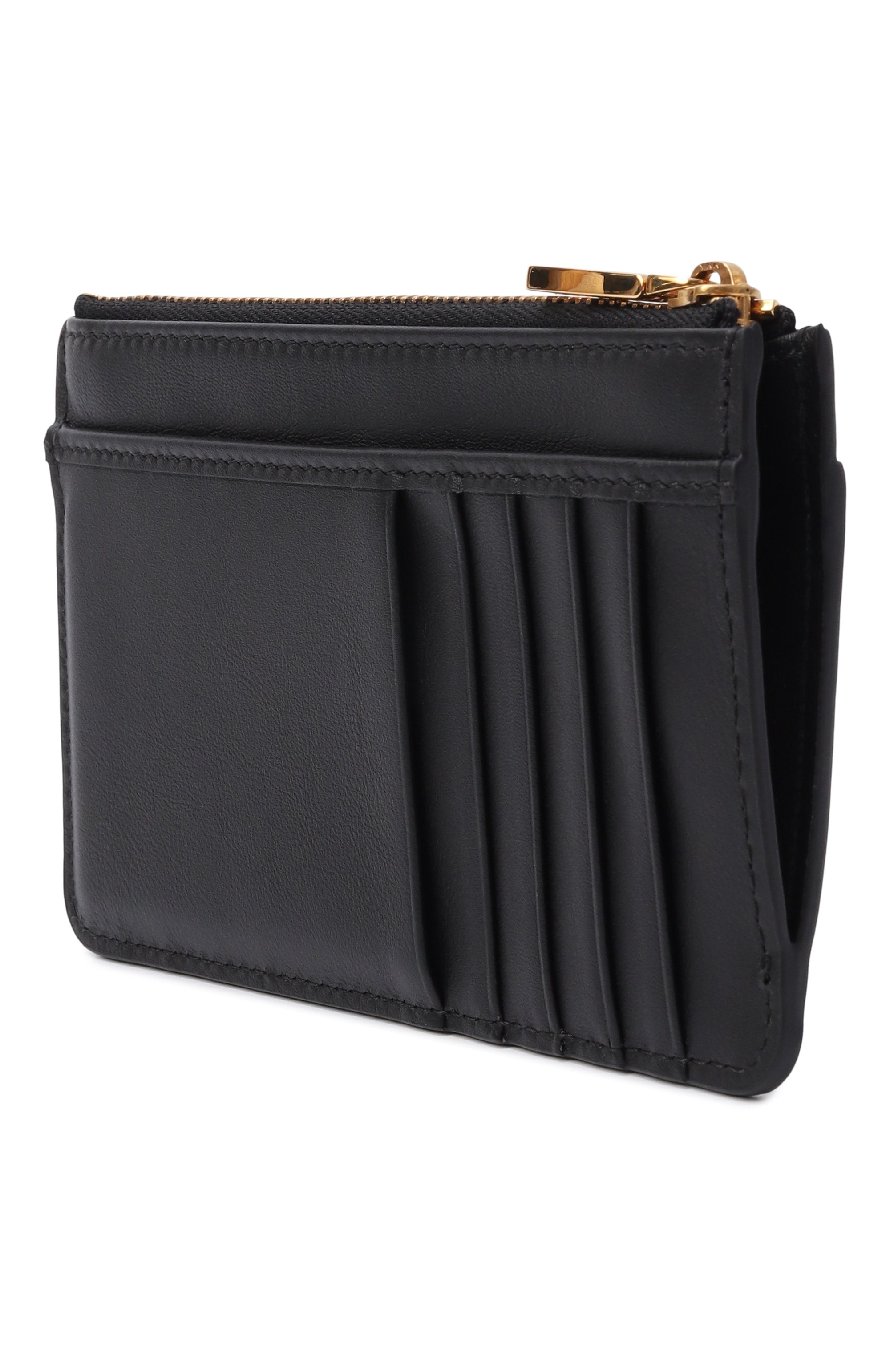 Кардхолдер для кредитных карт из телячьей кожи дополнили пятью карточными слотами, тремя кармана, один из которых – на молнии. Спереди аксессуар украсили пряжкой в форме фирменной монограммы бренда.
