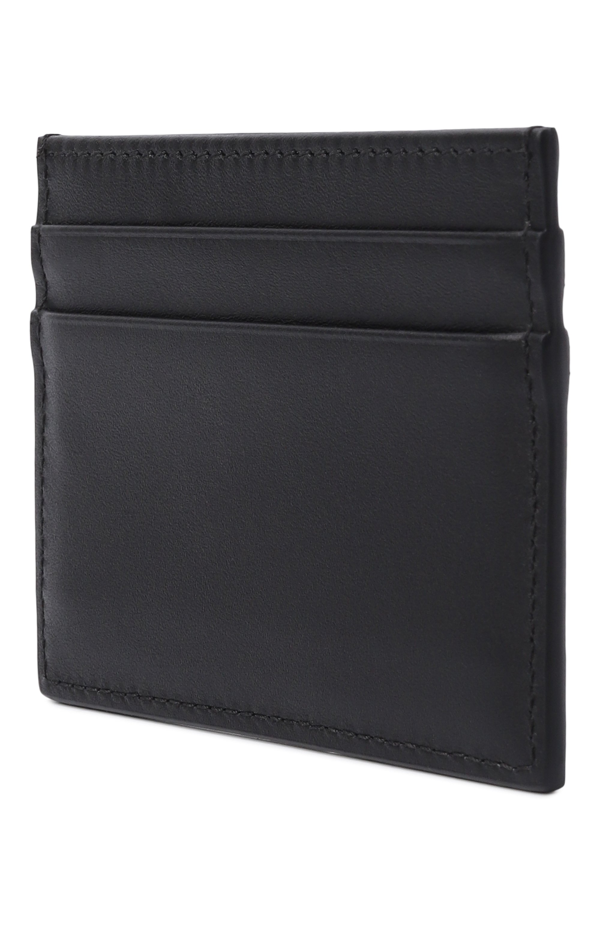 Кардхолдер из телячьей кожи украсили металлической монограммой бренда с витой отделкой дополнили четырьмя карточными слотами и отделением для чеков.