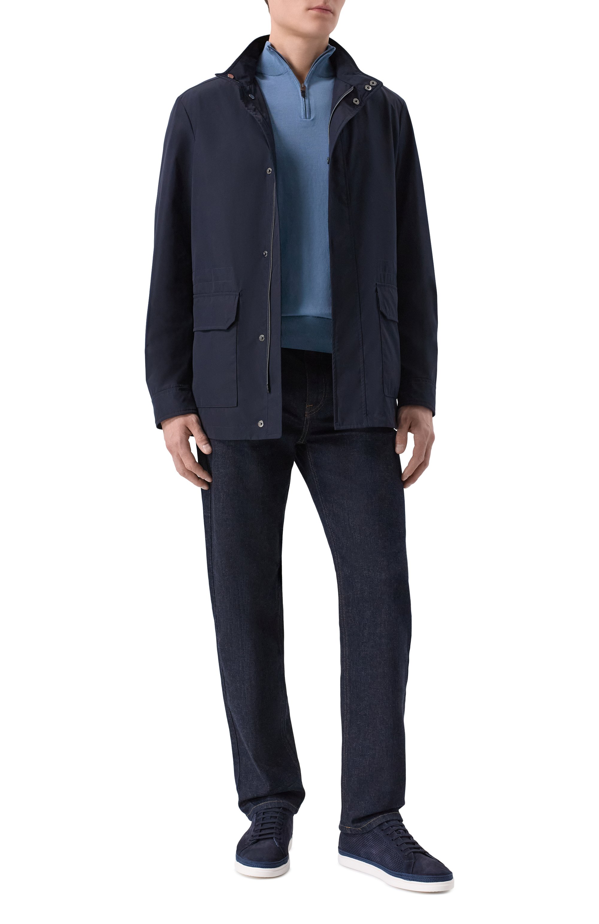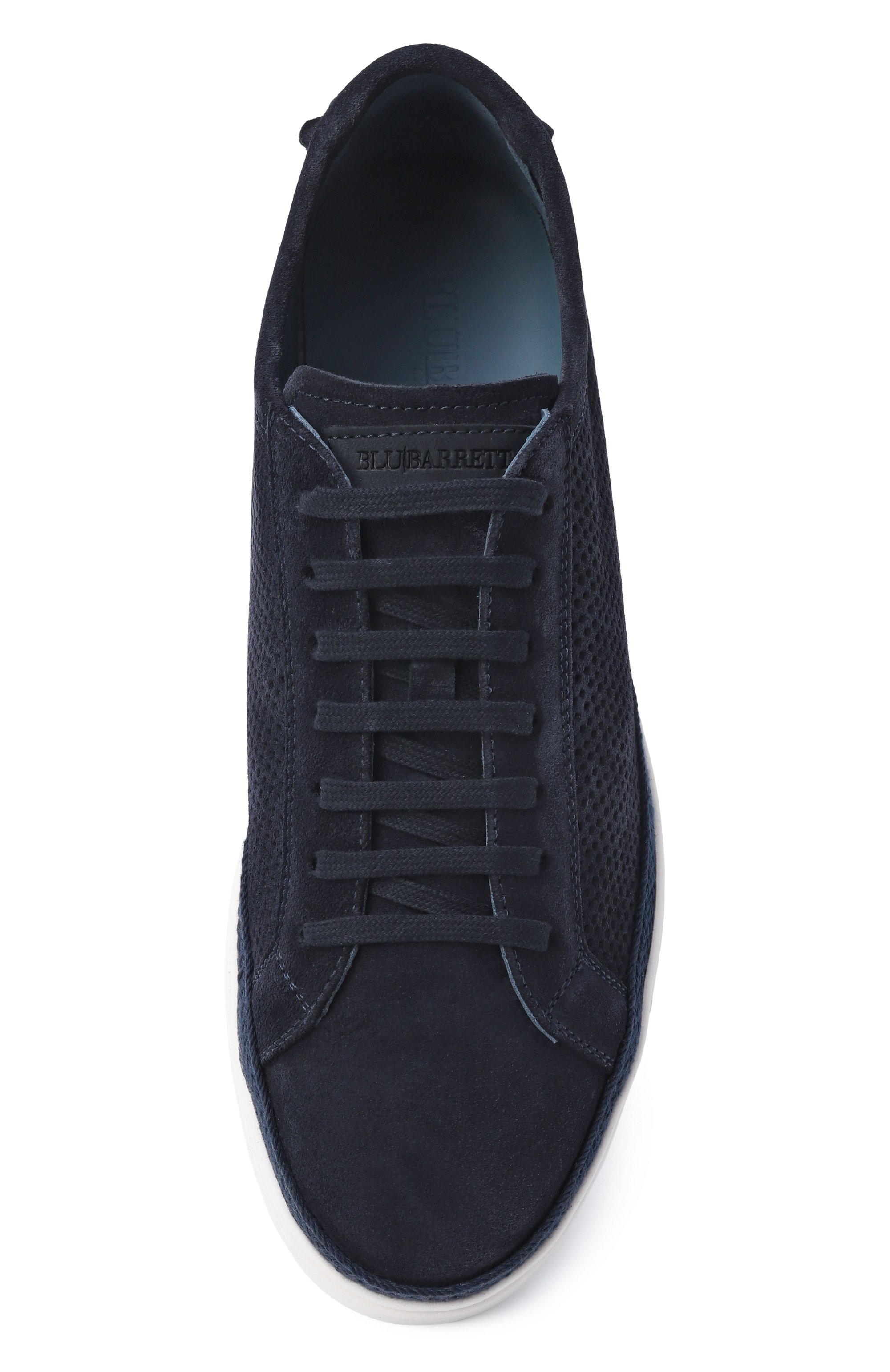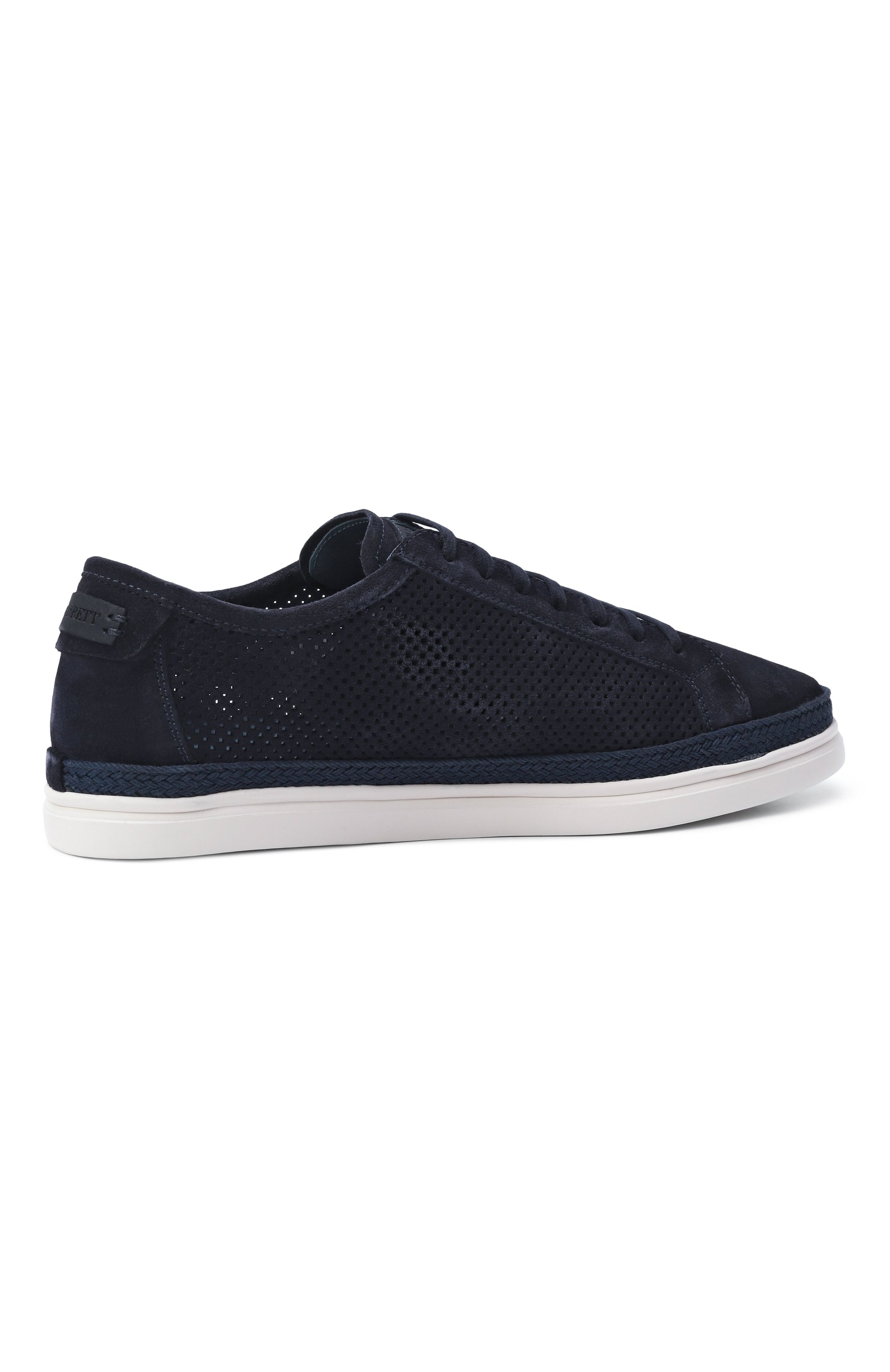 Кеды из перфорированной и цельной замши на контрастной резиновой подошве с плетеным рантом. Язычок и задник модели дополнили брендированными нашивками в тон.