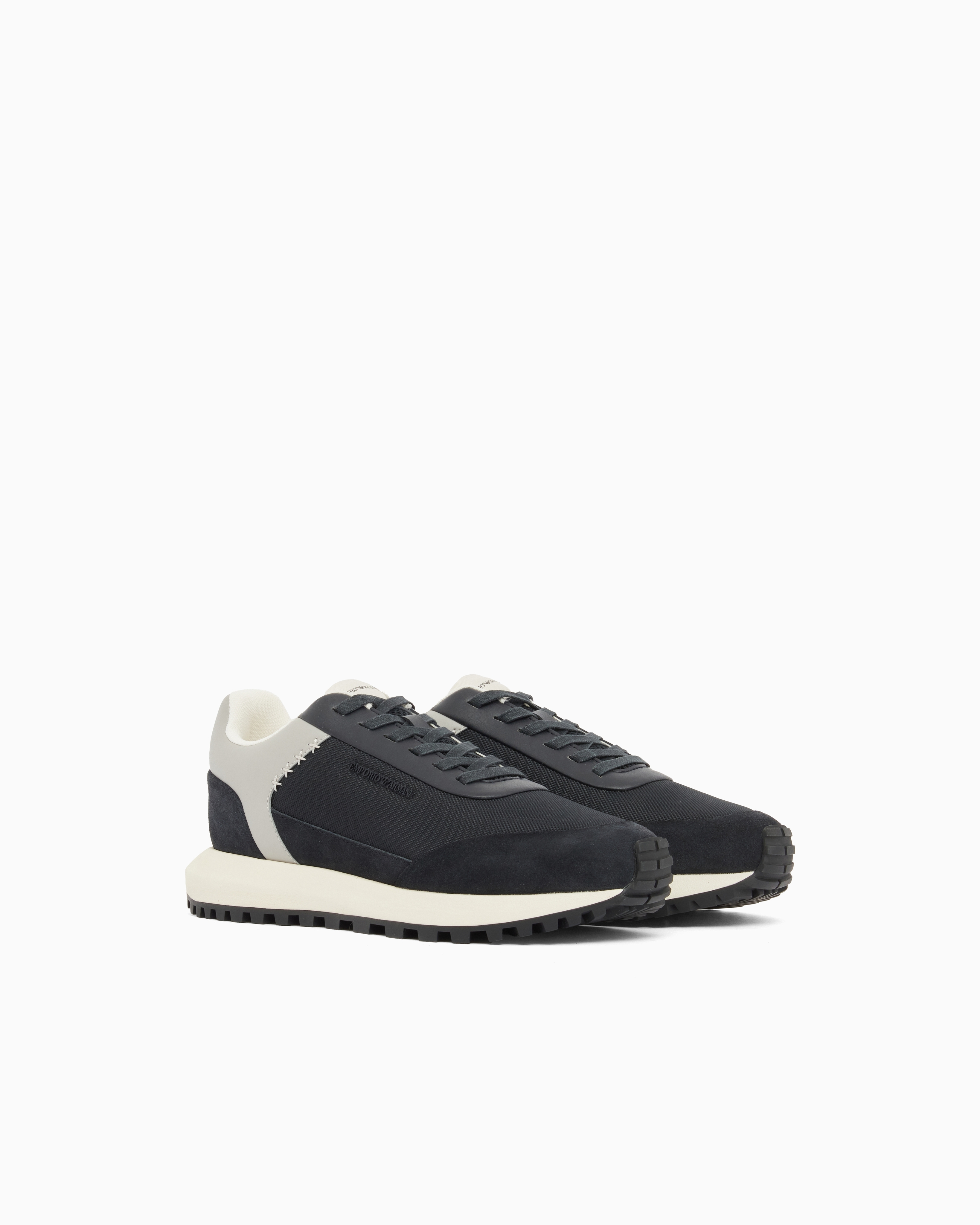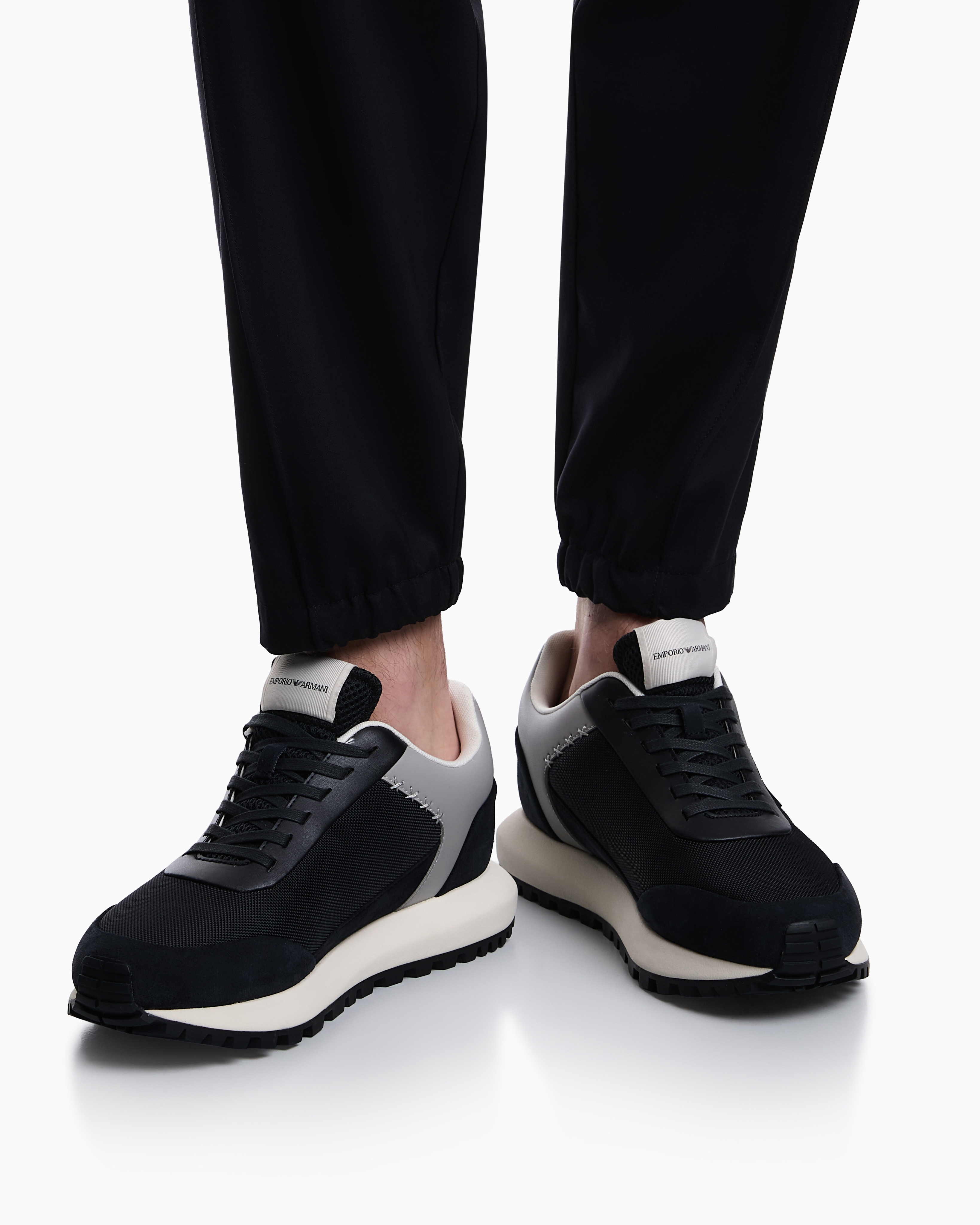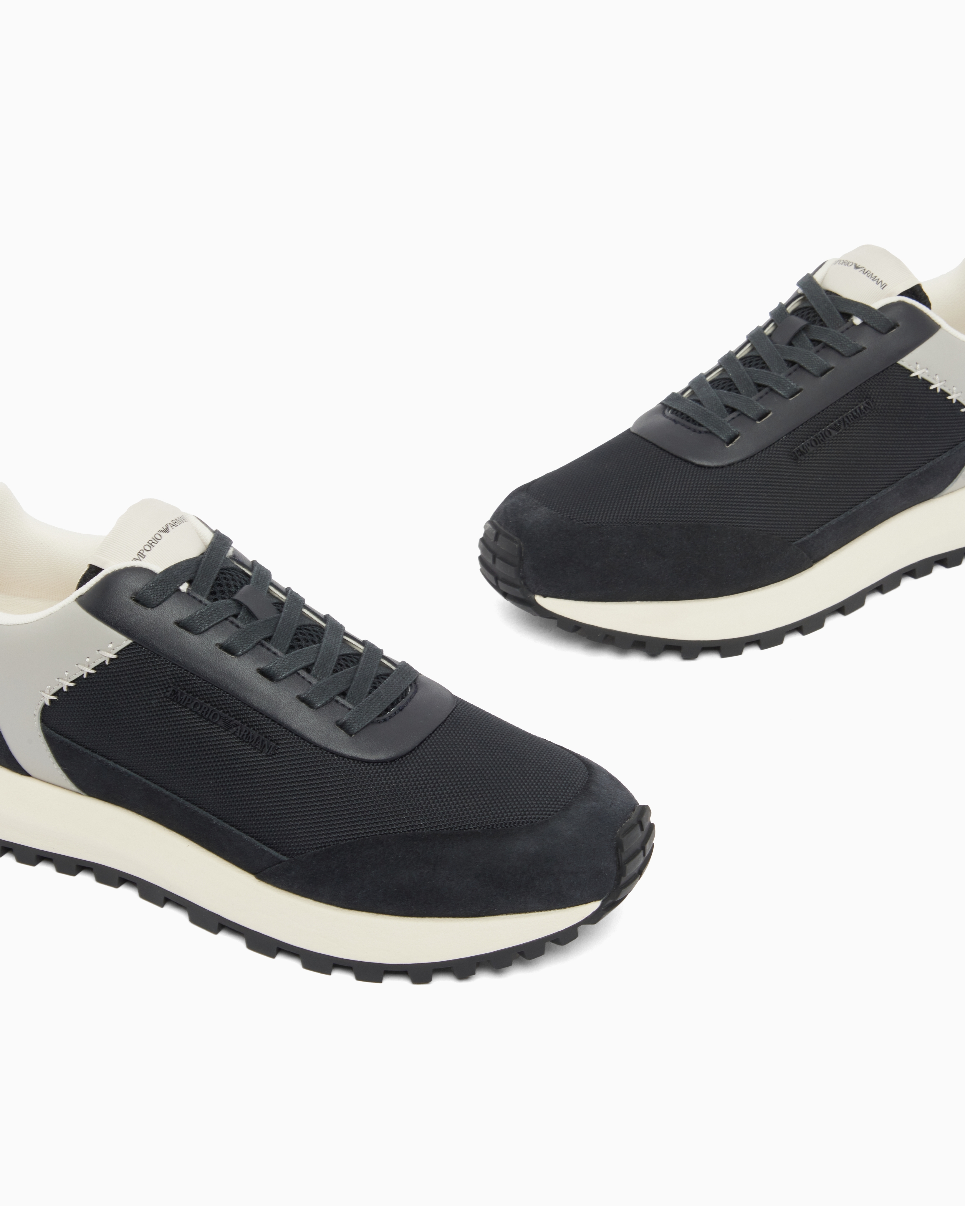 Кроссовки из комбинации замши и сетчатого текстиля с функциональной шнуровкой дополнены по бокам фирменным логотипом бренда.