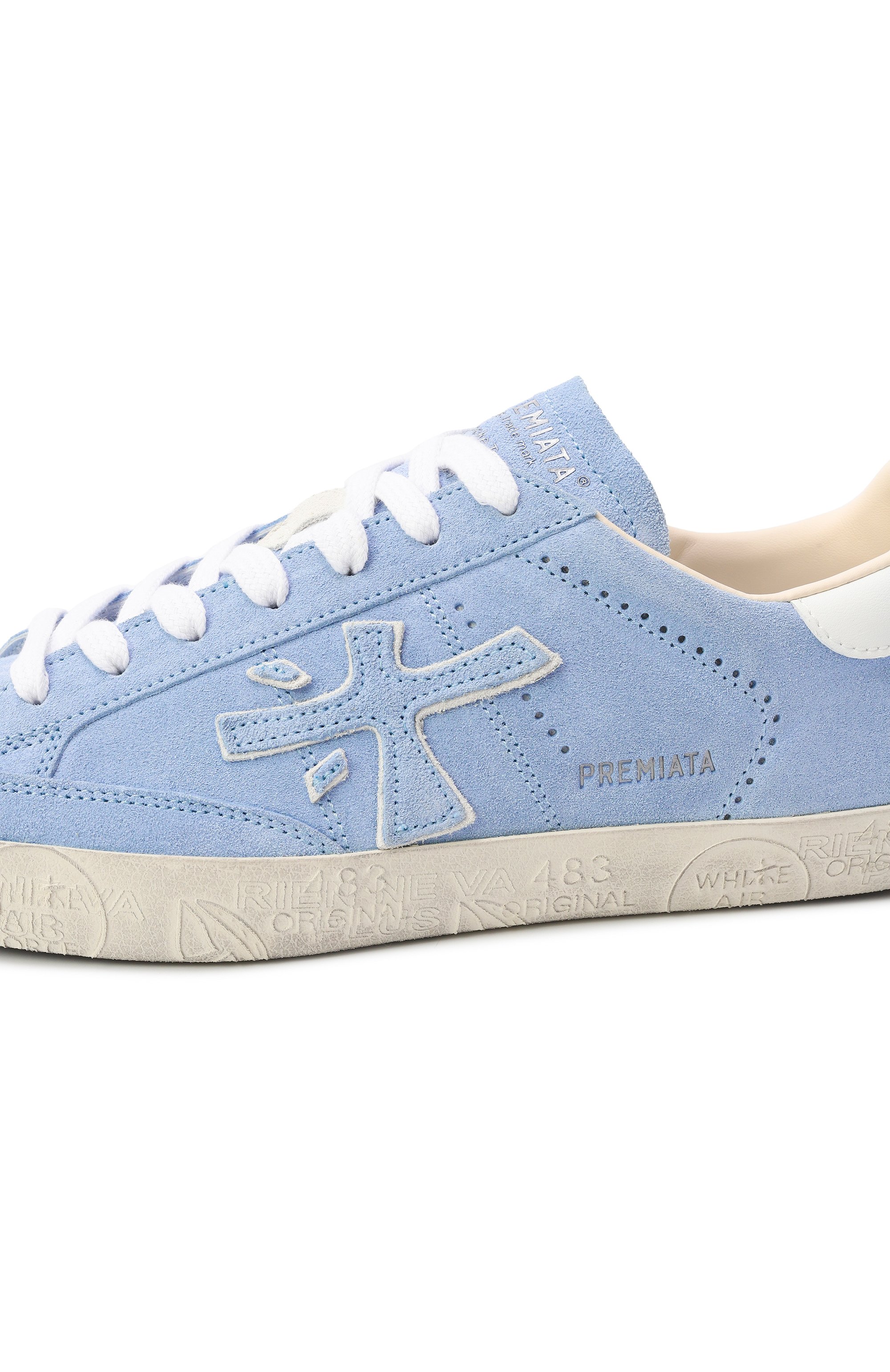 Кеды Steven D на гибкой брендированной подошве из яловой замши дополнили перфорированным узором на боковых панелях и фирменными иероглифами, а на гладком кожаном заднике и язычке – логотипами марки.