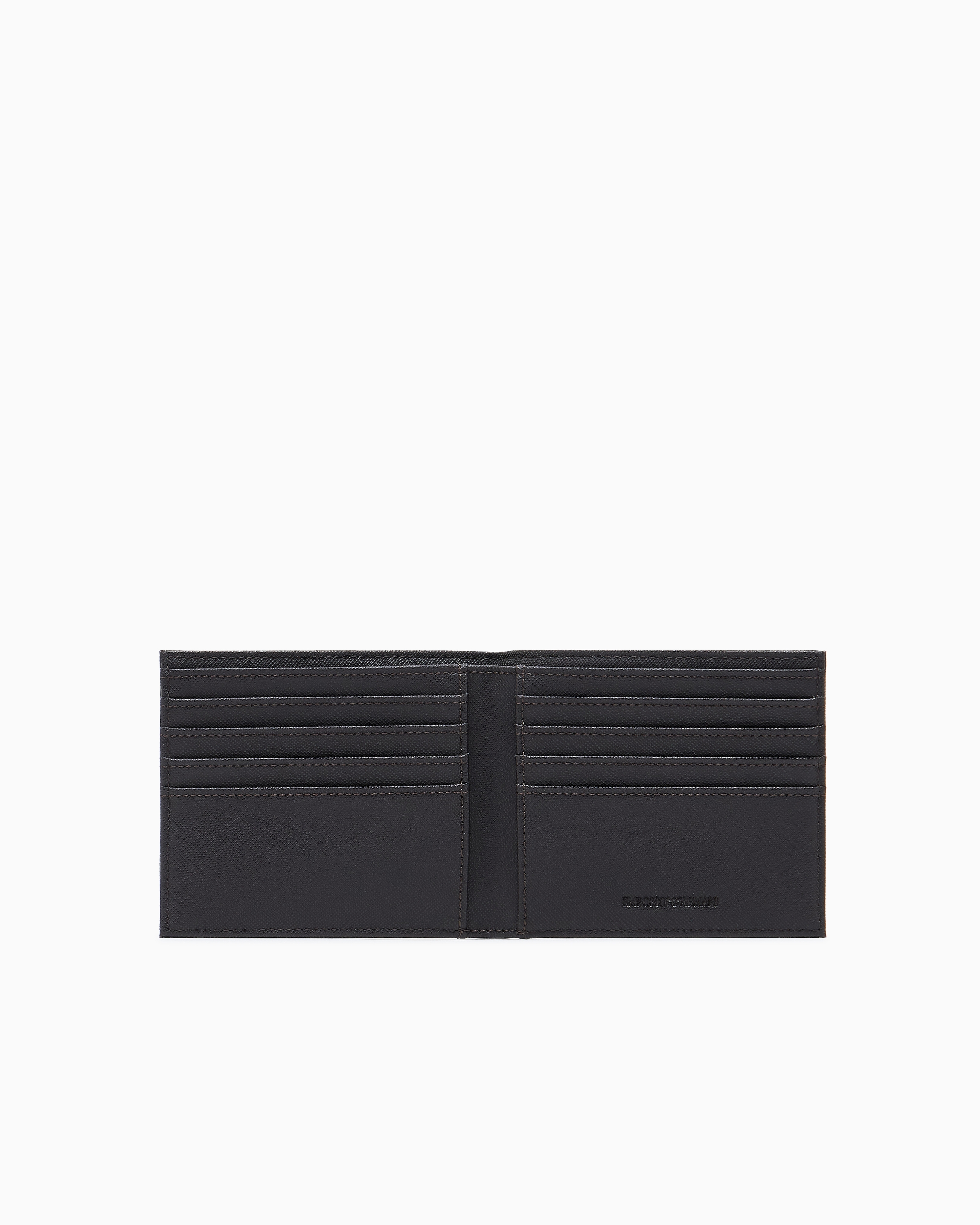 Вместительный и компактный кошелек с многочисленными внутренними отделениями украшен фирменным металлическим логотипом бренда.