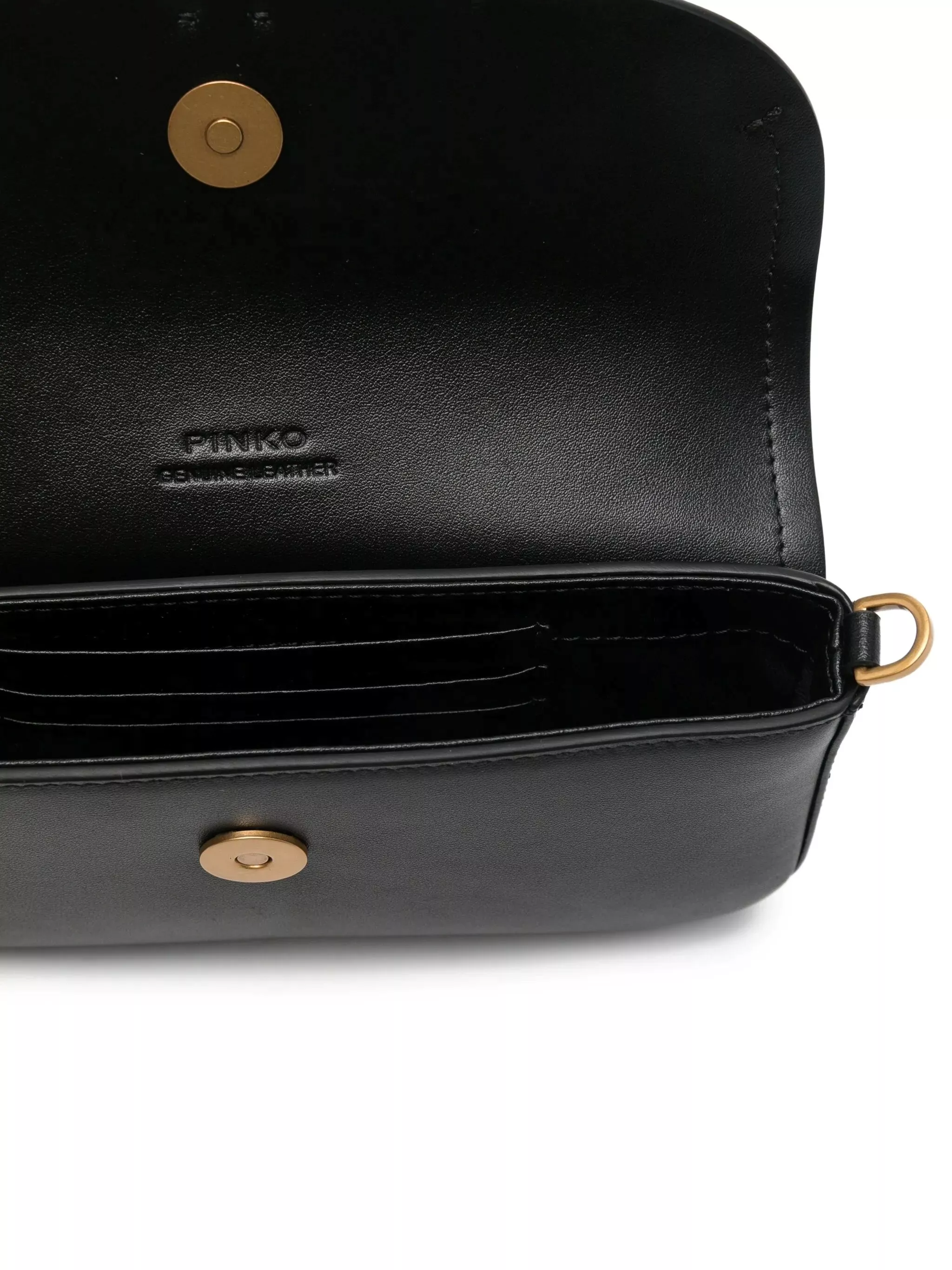 Лаконичная формоустойчивая сумка из гладкой кожи с магнитной застежкой дополнена регулируемым плечевым ремнем.
