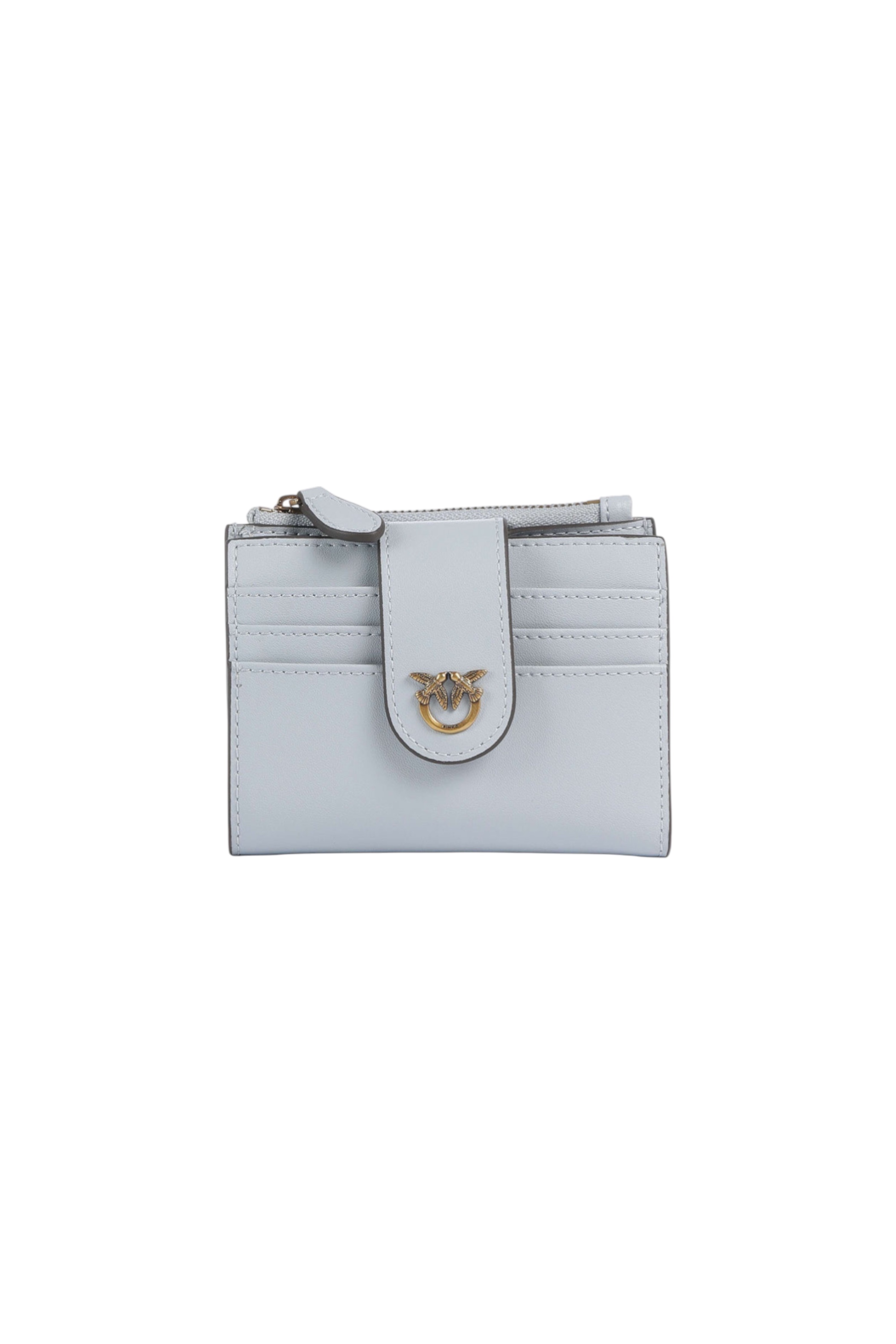 Кошелек из мягкой кожи прямоугольной жесткой формы с застежкой-кнопкой дополнили внутри 3 слотами для банковских карт, отделением для купюр и отделением для монет на молнии. Компактный размер позволит носить аксессуар даже в маленькой сумке, или в кармане пальто.