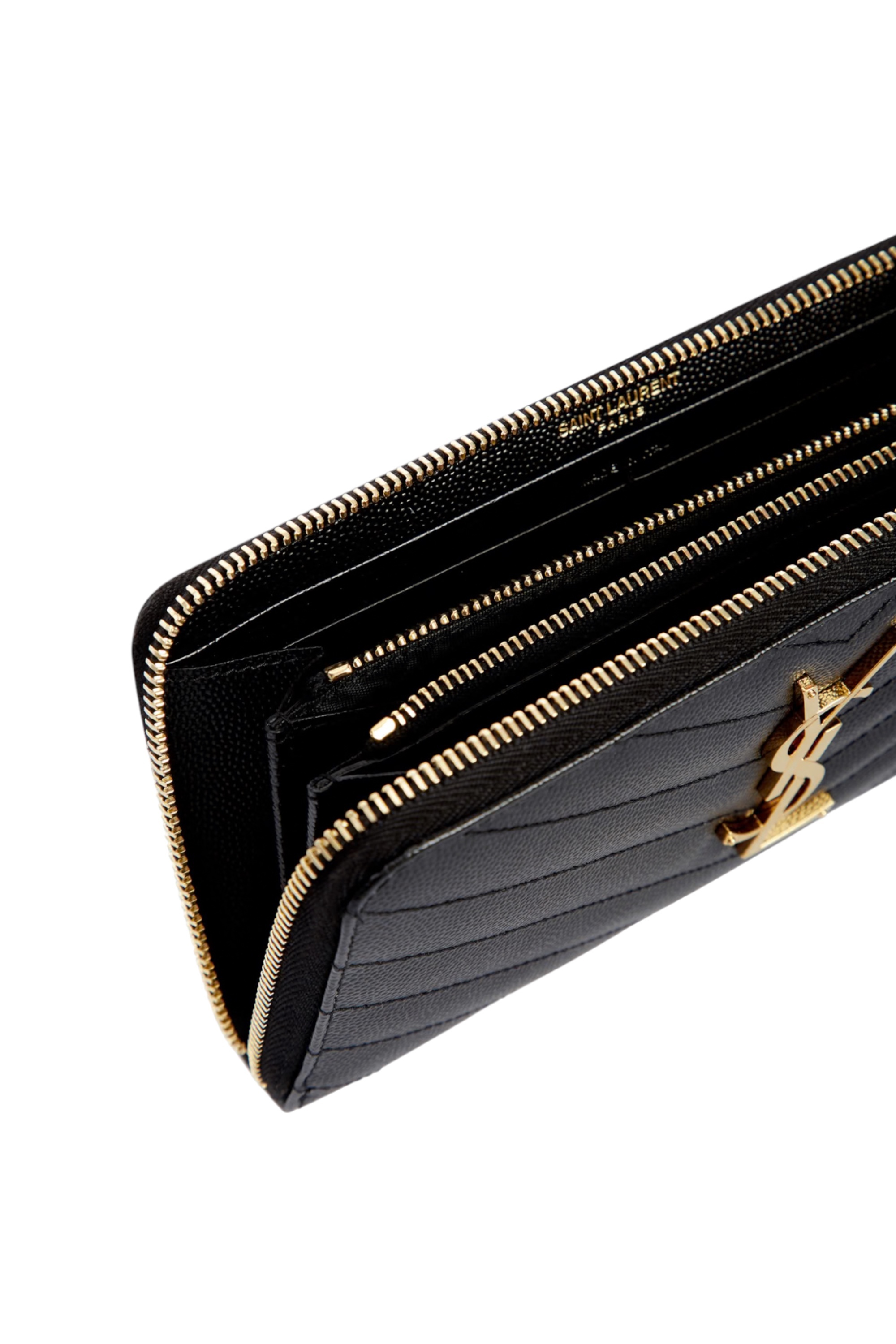 При изготовлении стеганого портмоне Monogram мастера марки, основанной Ивом Сен-Лораном, использовали фактурную мелкозернистую кожу. Аксессуар украшен металлической монограммой, которую придумал Адольф Кассандр.