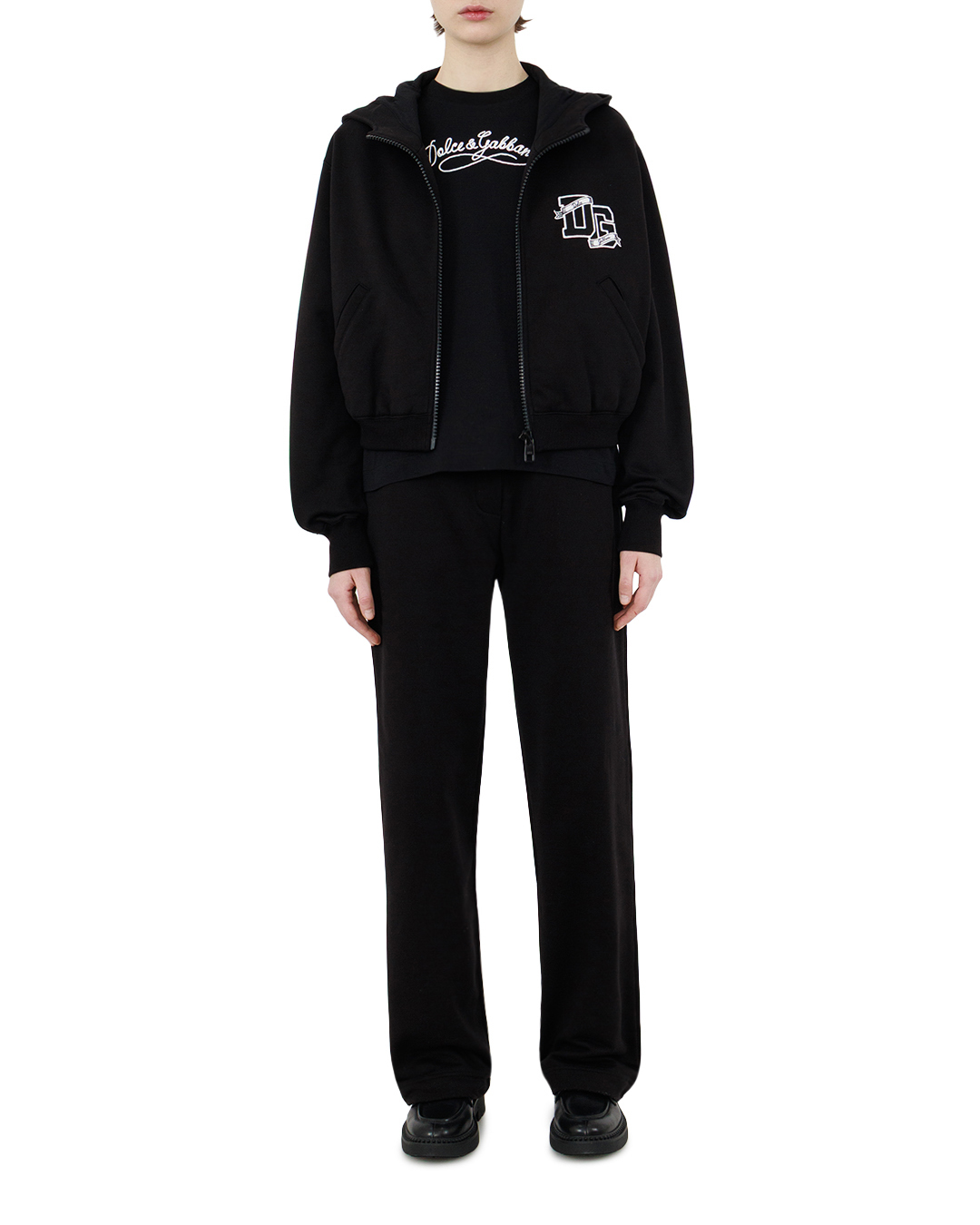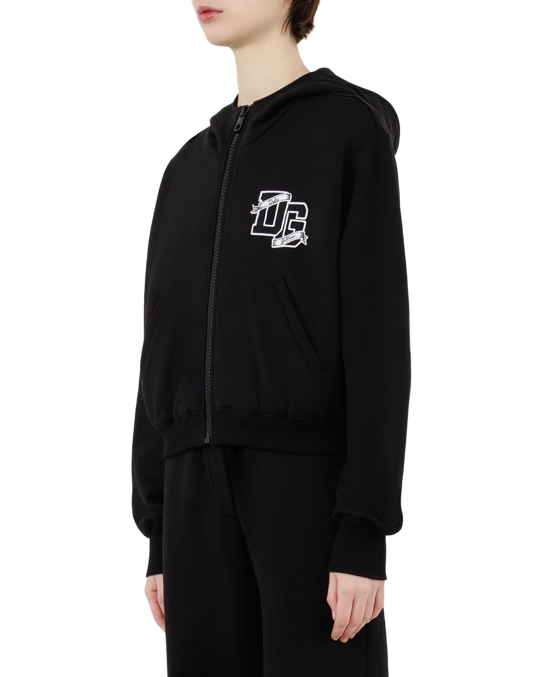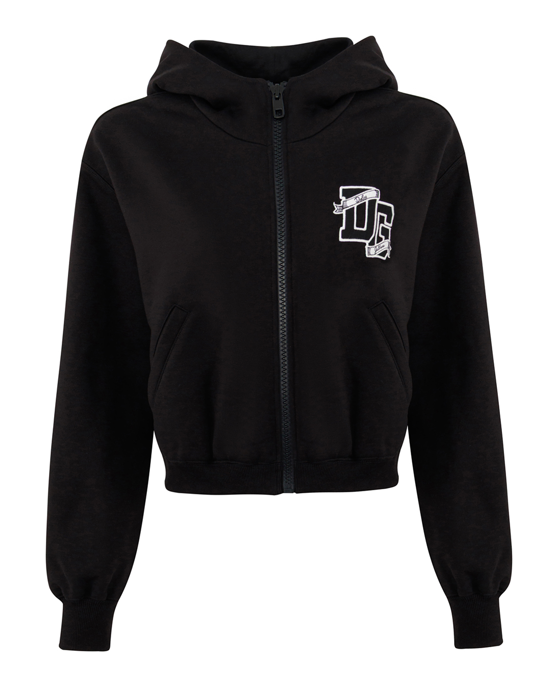 - толстовка укороченного кроя с застежкой на молнию дополнена эластичными манжетами, капюшоном, боковыми карманами и украшена контрастным логотипом бренда;