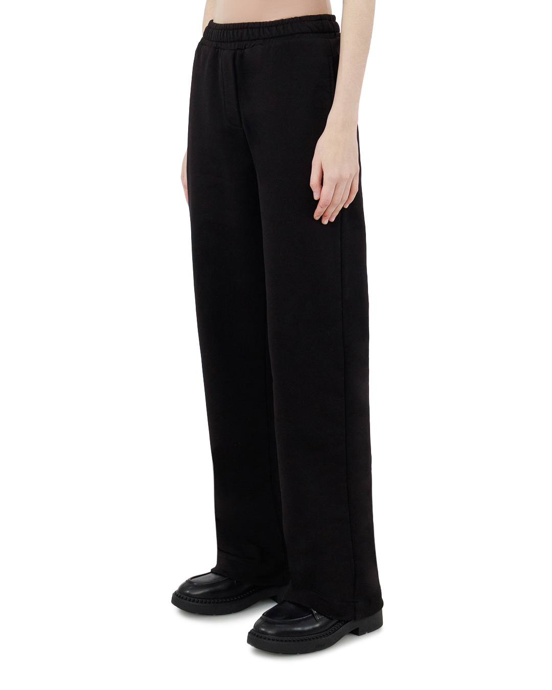 - брюки с легким клешем к низу на эластичном поясе, который обеспечивает комфортную посадку, мягко облегая талию без малейшего давления, украсили контрастным логотипом бренда на заднем кармане.