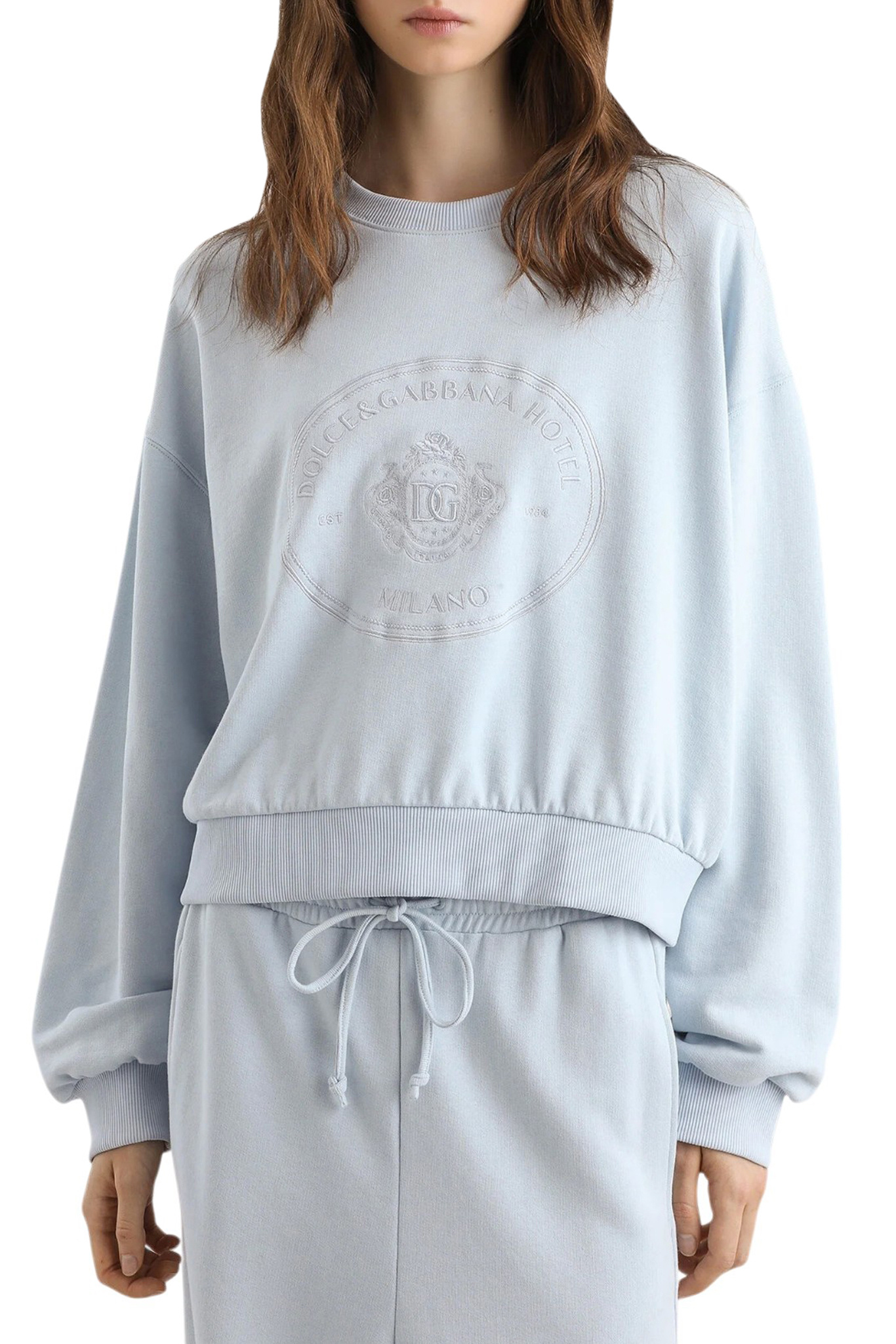 - свитшот с эластичными манжетами расслабленного силуэта украшен спереди крупной вышитой эмблемой с логотипом бренда;