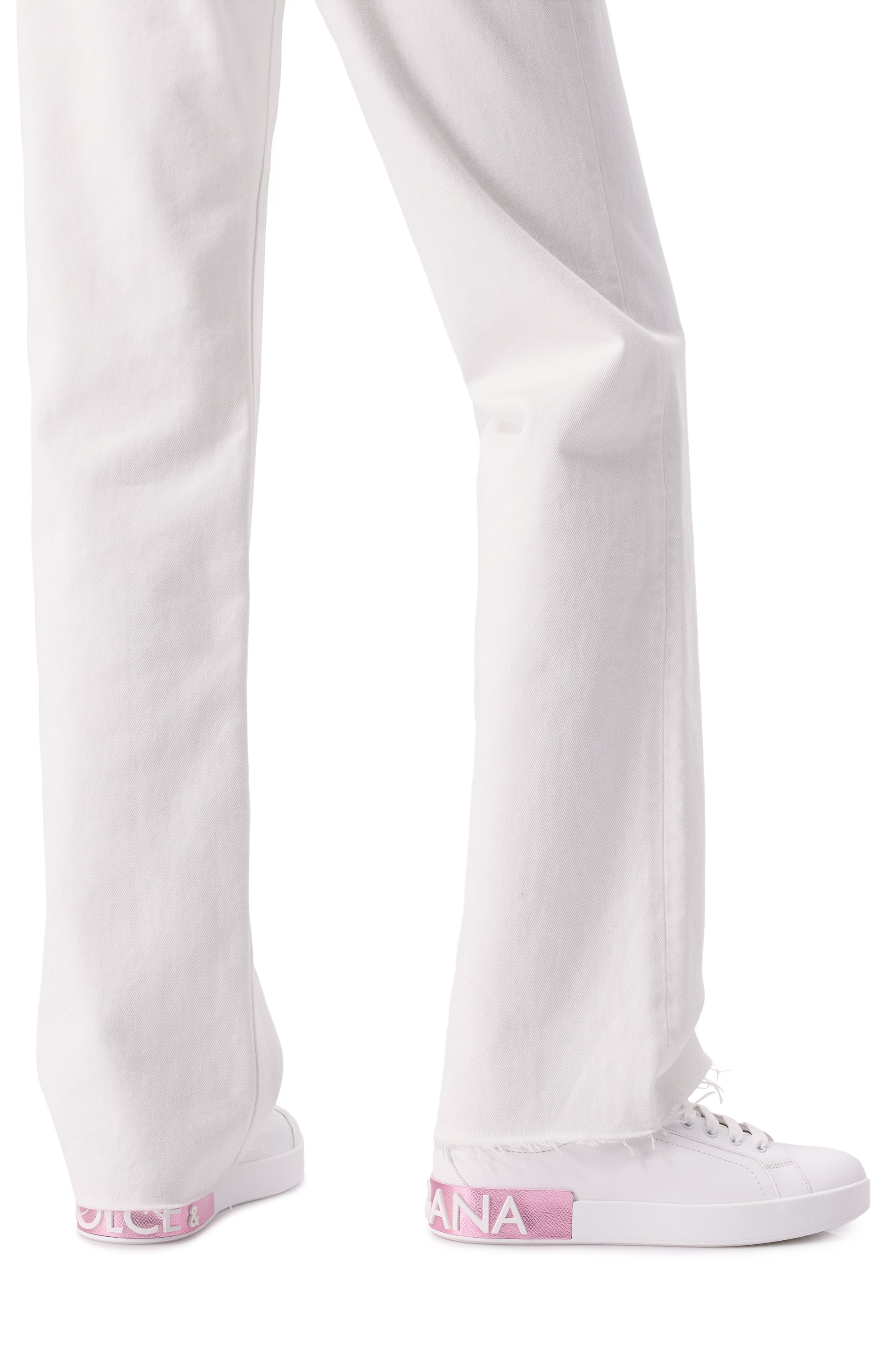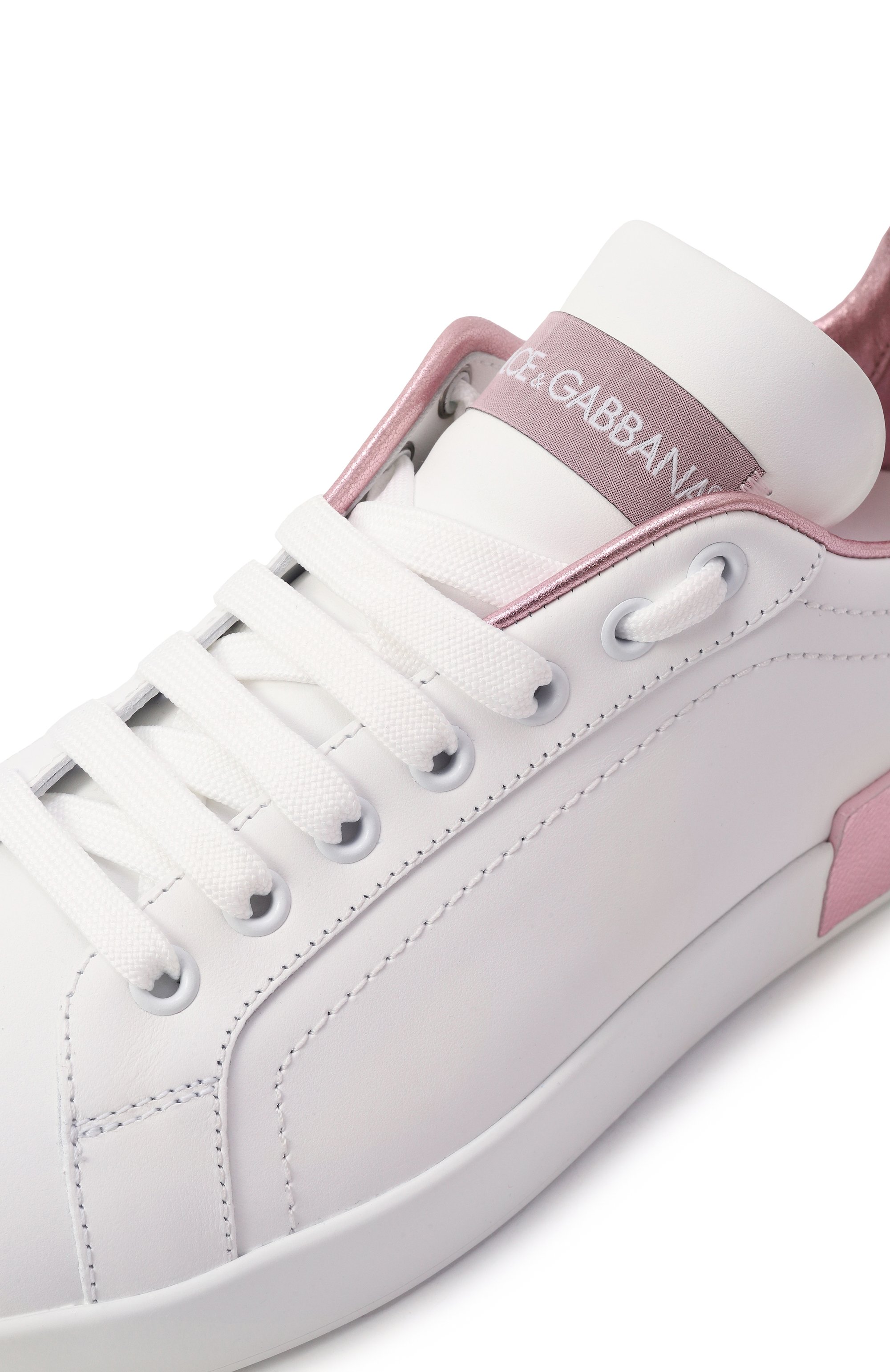 Знаковые кеды Portofino из гладкой матовой кожи с внутренней механизированной отделкой декорировали контрастной блестящей вставкой на заднике.