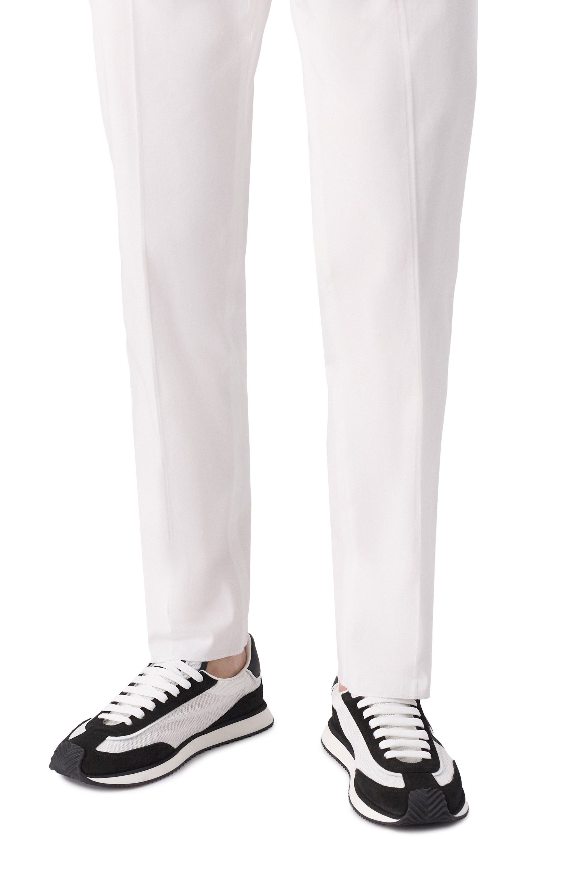 Кроссовки из сочетания сетчатого текстиля и замши с кожаным задником и нашивкой на язычке установили на почти невесомую подошву. Пару украсили по бокам крупной монограммой бренда, в тон которой выполнили детали на самых уязвимых частях верха.